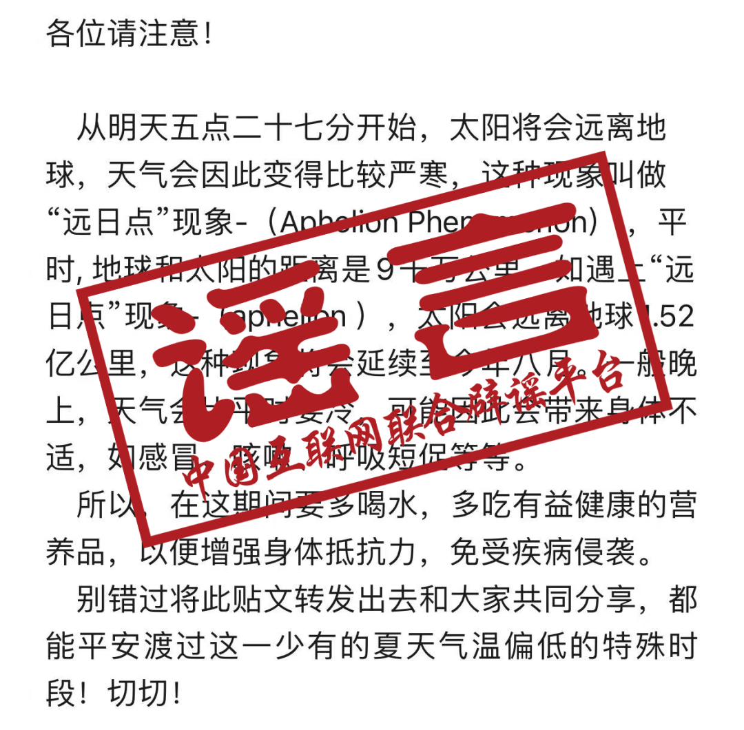 网传说法称,“太阳将会远离地球,天气会因此变得比较严寒”。