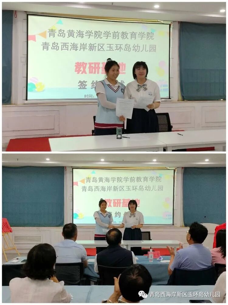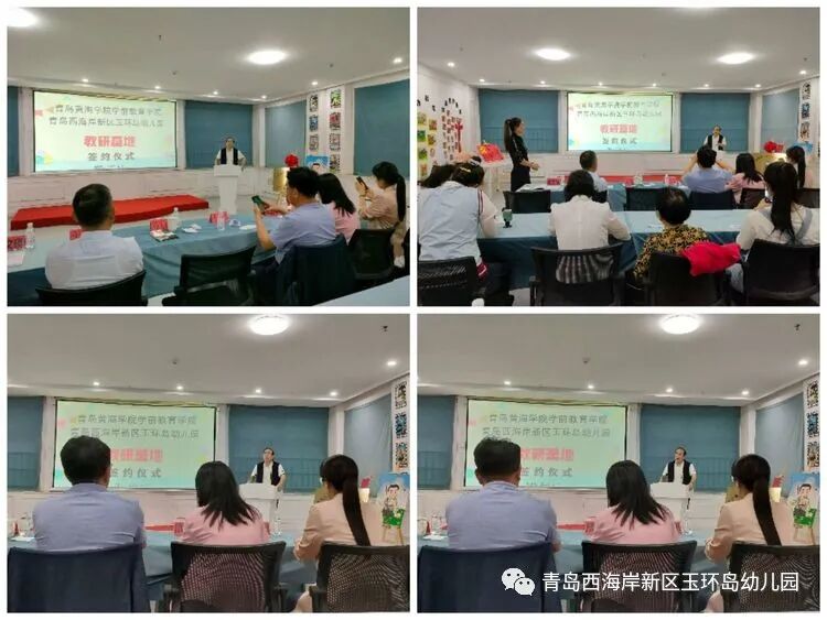 6月14日,青岛黄海学院学前教育学院与青岛西海岸新区玉环岛幼儿园进行教研基地、实践教学基地签约及挂牌仪式。