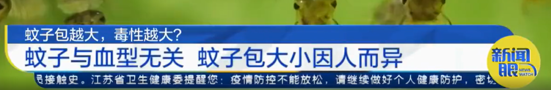 被蚊子叮咬后,身上的蚊子包个头大小与个人的免疫性系统机制强弱有密切关联,与蚊子毒性高低无关。