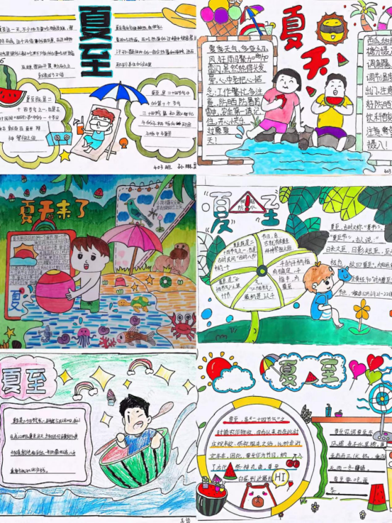 夏至是彩色的,夏至是热闹的,夏至是美丽的。我手绘我心,同学们用手中的画笔将夏至描绘成一幅幅色彩缤纷的手抄报,用彩笔书写多彩夏天!