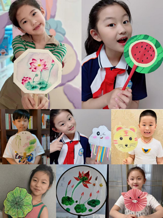 夏至节气气温逐渐升高,一年中最热的时期就要到了。暑热难耐,同学们在周末利用各种材料制作一把把形色各异的小纸扇,既体验了创作的乐趣,也为炎热的夏天带来丝丝凉意。