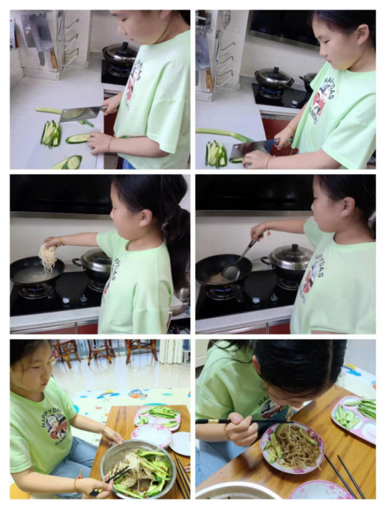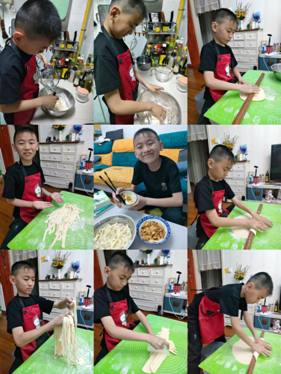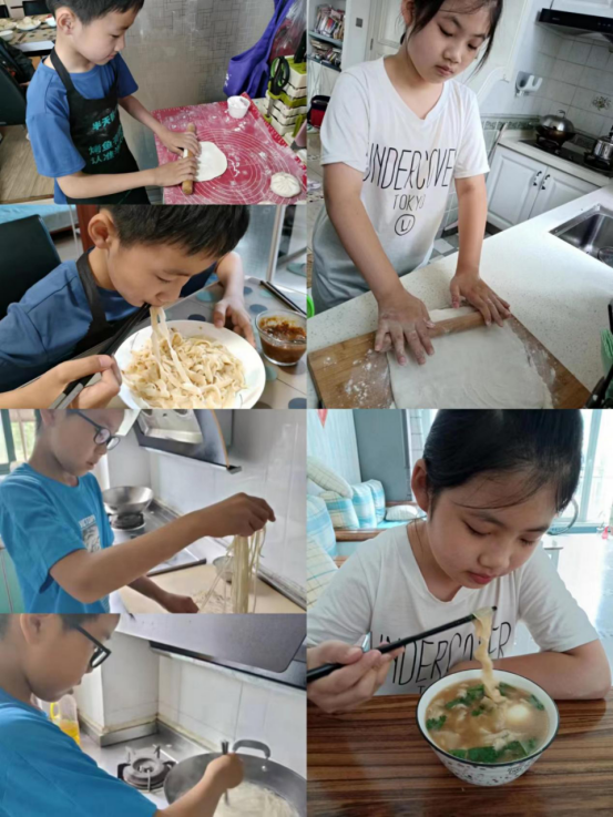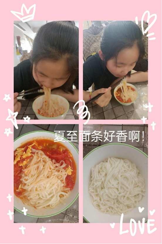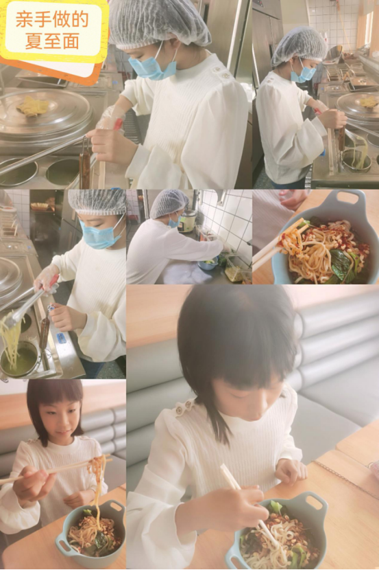 “冬至饺子夏至面”,夏至时节,民间有“吃过夏至面,一天短一线”的说法,同学们在家学习制作面食,提高了动手能力,在品尝节气美食的同时也了解节气习俗背后的美好祈愿。