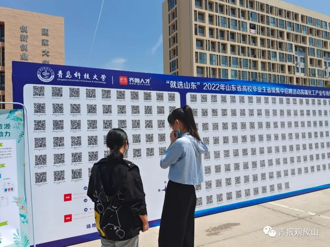 5月中旬,在青岛科技大学崂山校区的一场校园招聘会上,国际贸易专业的田淇与一家国内大型物流企业的招聘人员详细咨询。咨询完,又开始翻看手中那一摞企业招聘宣传单页,继续挨个到企业“摊位”前了解,以免错过好的就业机会。