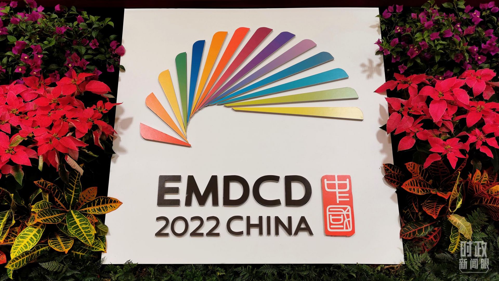 △今年的对话会,沿用了五年前对话会的会标主图案。(总台央视记者黄京辉拍摄)