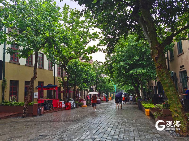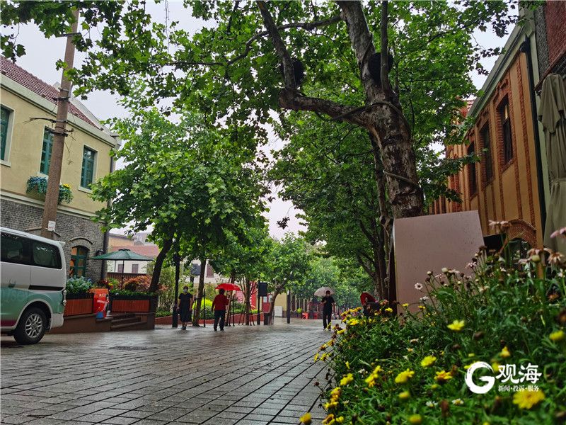 青岛日报社/观海新闻6月27日讯 经历了一夜的暴雨,今天,淅淅沥沥的小雨继续下着,行人撑伞漫步在大鲍岛文化休闲街区,雨中浪漫“氛围感”上线。(青岛日报/观海新闻记者 余瑞新 文/图)