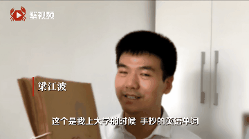 2006年,梁江波通过考试进入北京联合大学。在校期间,他依然刻苦学习。手抄英语单词,他抄了厚厚的6本。