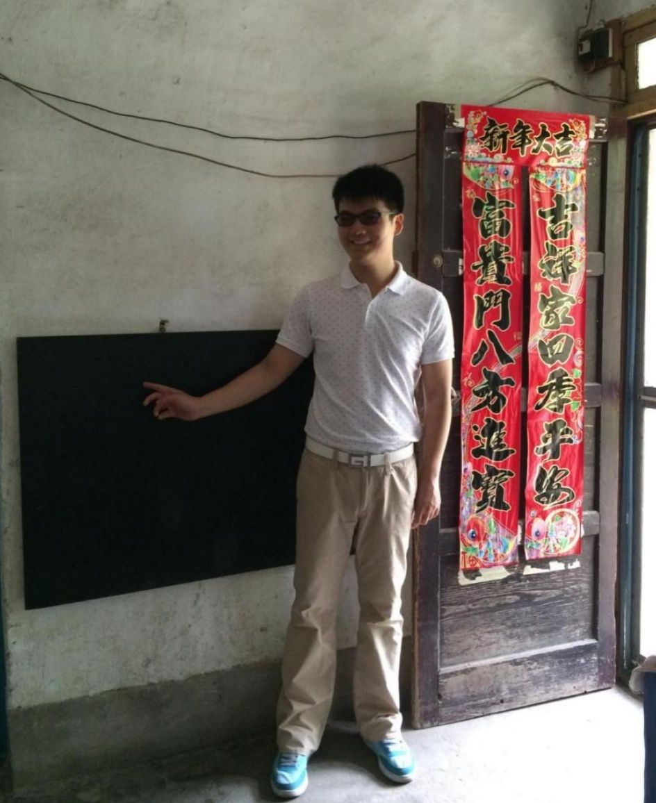 家里挂起旧黑板,“老师”成了夫妻俩的第二职业。父亲借来课本,逐字逐句把内容抄在黑板上。“字很大,写一行空一行,我就比对爸爸的笔迹,一边模仿一边念。”