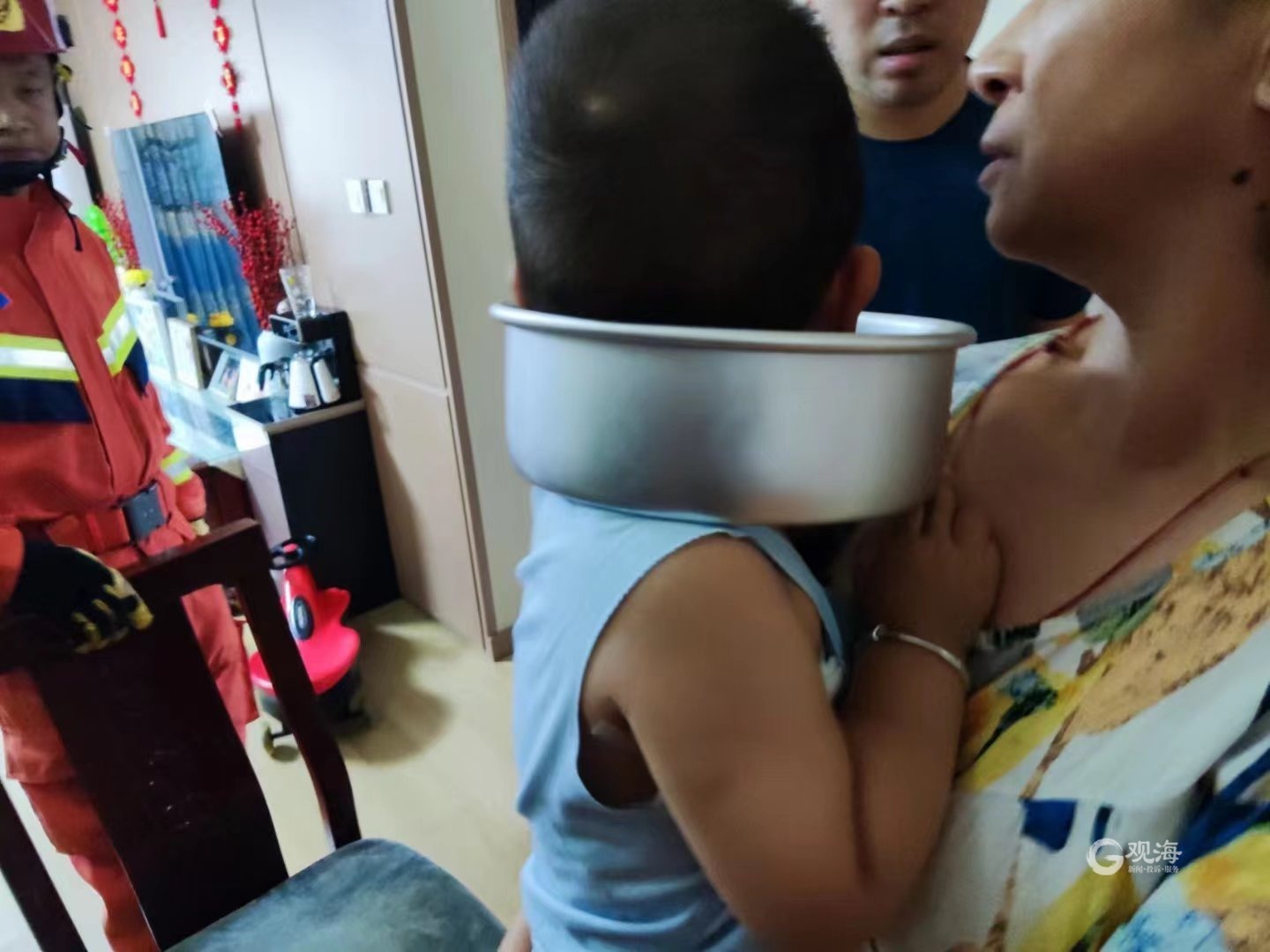 青岛日报社/观海新闻7月21日讯 7月20日16时35分许,即墨区消防救援大队接到报警称,位于即墨区潮海街道万科朗润园小区一名小孩在家中头被卡住,急需救助。接到报警后,大队119指挥中心立即调派城北三路消防救援站出动力量赶赴现场进行处置。消防救援人员到达现场后经询问得知,一名2岁的男童由于贪玩,将铝制蛋糕模具套到脖子上,无法取下,只能向消防部门求助。对此,消防救援人员首先让家长抱紧孩子,固定住其头部,在做好安全保护措施的前提下,使用剪断钳对模具的一侧进行剪切,扩大救援空间,3分钟后模具被成功取下,由于救援及时,孩子并无大碍。
