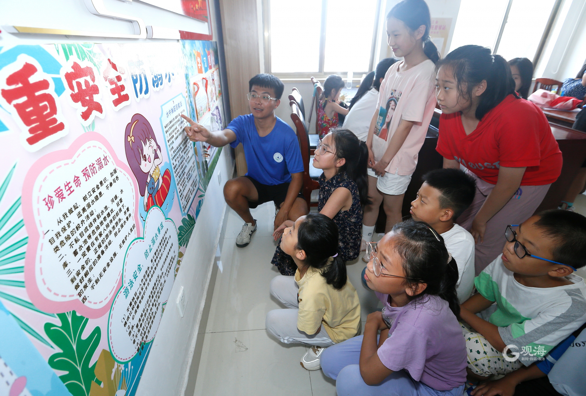 青岛日报社/观海新闻7月19日讯 暑假期间,山东理工大学、山东农业大学、宁夏师范学院、山东德州学院等高等院校的12名大学生志愿者来到即墨区龙山街道新时代文明实践站,办起小学生暑假“公益课堂”,在这里为附近村庄的孩子们提供课程辅导、安全常识、体育健身、社会实践、科普教育等公益服务,与孩子们快乐互动,共度暑期时光。(青岛日报/观海新闻记者 王涛 通讯员 梁孝鹏 文/图)