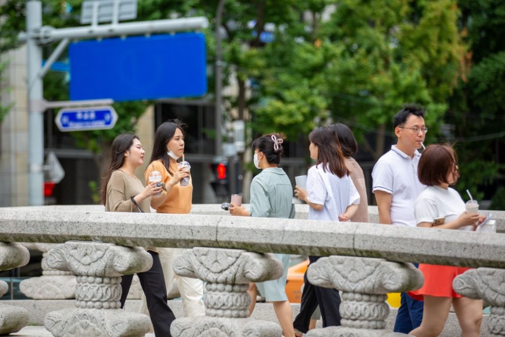 7月12日,人们在韩国首尔街头行走。新华社记者 王益亮 摄