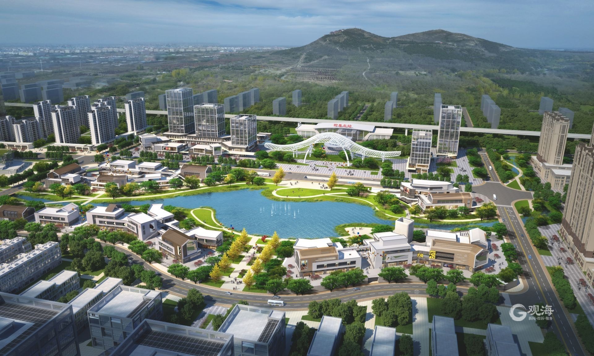 站在即墨区鹤山西路向西看去:一座像马鞍一样的山脉挺拔壮观,山脉东麓就是高铁即墨北站。这里每天来来往往列车经过,大量旅客从这里入青,成为对外展示青岛城市形象的一个重要窗口。即墨北站开通后,这一片区处于低效能运转状态,对此,即墨区周边包括旧村改造、山体治理等项目全部纳入“一揽子”工程,进行更新建设。