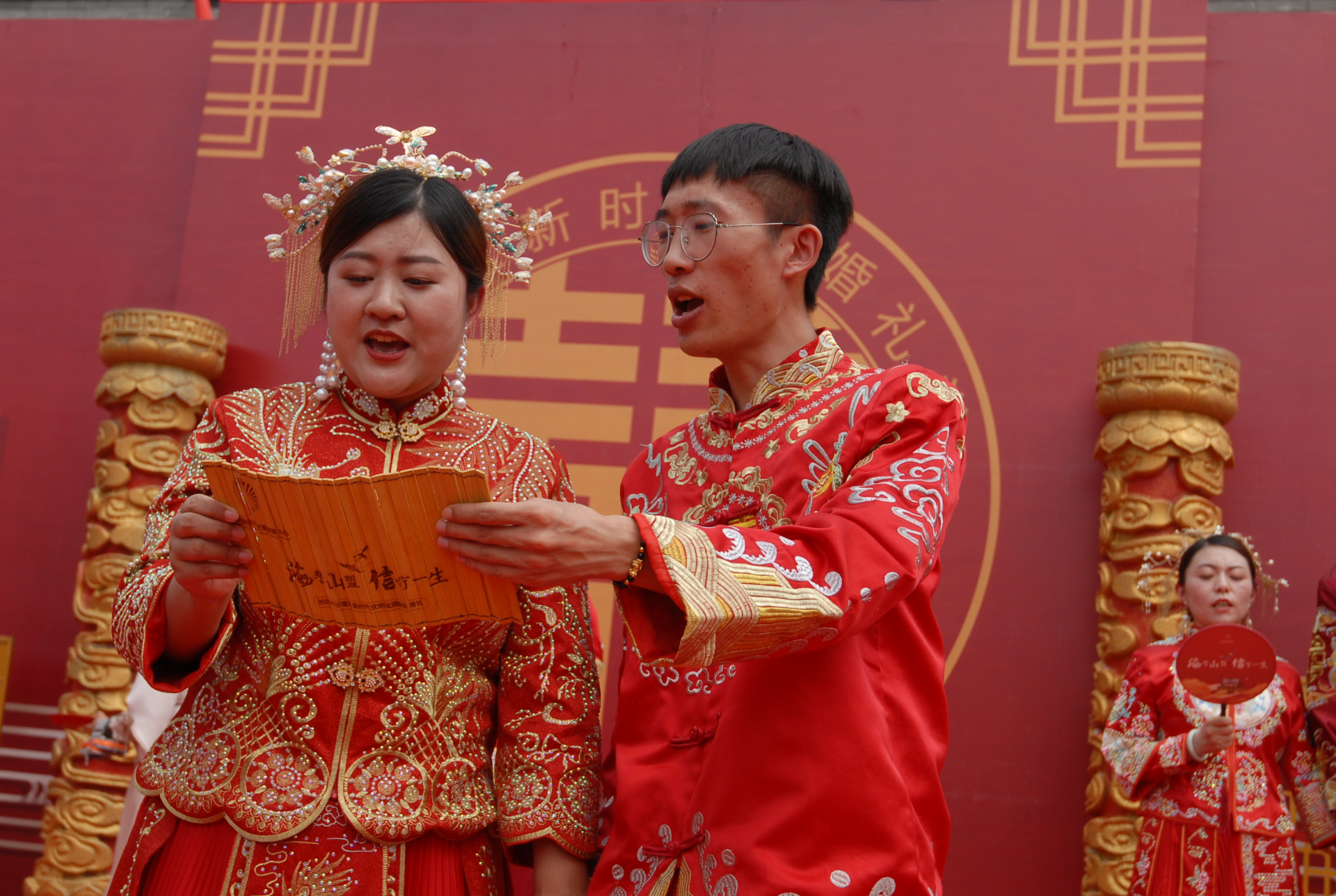 “在网上看到集体婚礼的消息,我们都觉得形式很新颖,父母也都非常赞同,于是便报了名,希望在大家的见证和祝福下,开启我们新的人生阶段。”新娘张翠说。