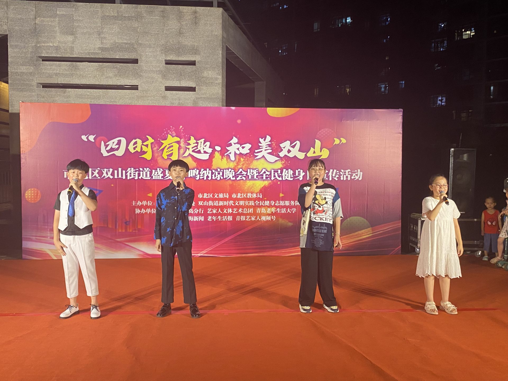 青岛日报社/观海新闻8月8日讯 8月7日傍晚,由青岛市市北区文旅局、市北区教体局为指导单位,双山街道、兴业银行青岛分行、青岛老年生活大学、青报艺家人文体艺术总团联合举办的“四时有趣·和美双山”市北区双山街道盛夏蝉鸣纳凉晚会暨全民健身日宣传活动,在万科城多伦多街区中心广场举行,来自双山街道新时代全民健身志愿服务队、青岛老年生活大学和青报艺家人文体艺术总团的200多名文体爱好者和社区群众欢聚一堂,用欢歌乐舞迎接党的二十大,共享幸福市北新生活,不断提升“文化市北”品牌价值。
