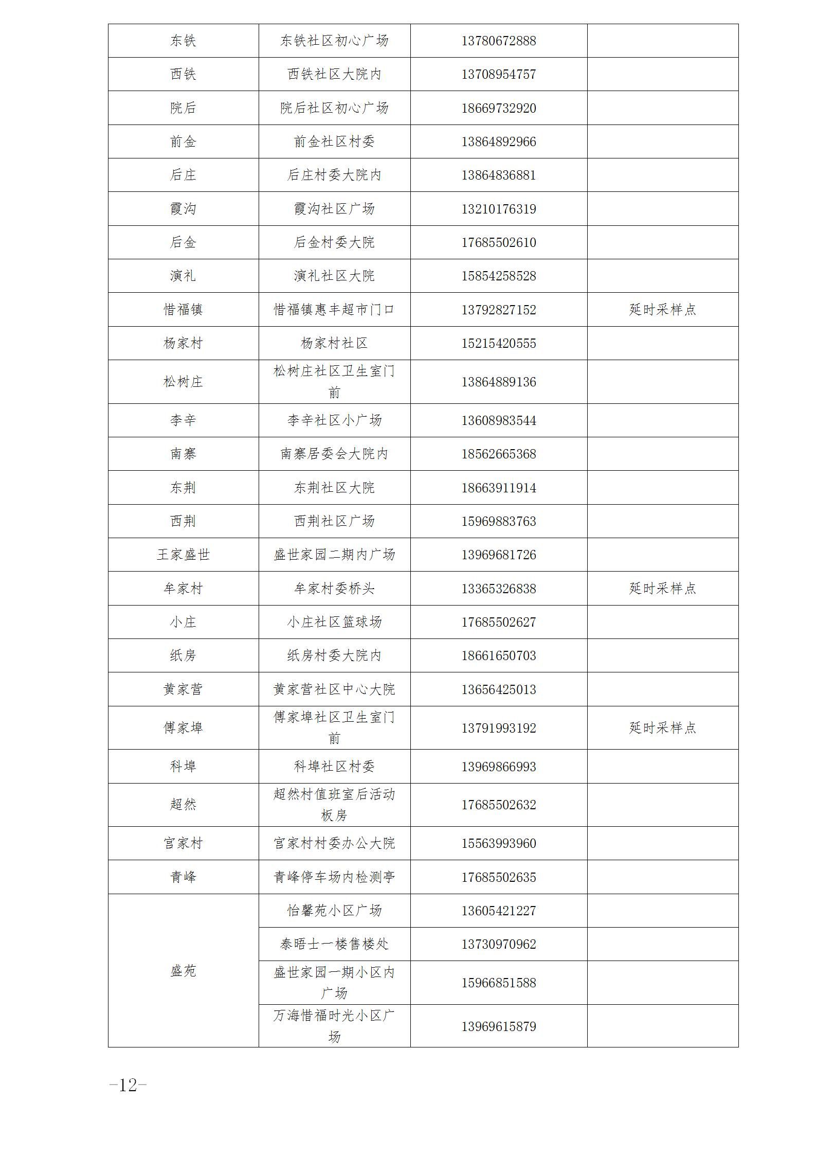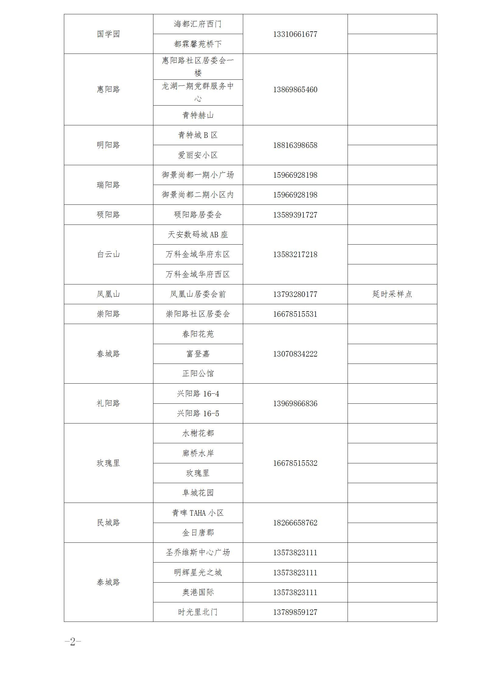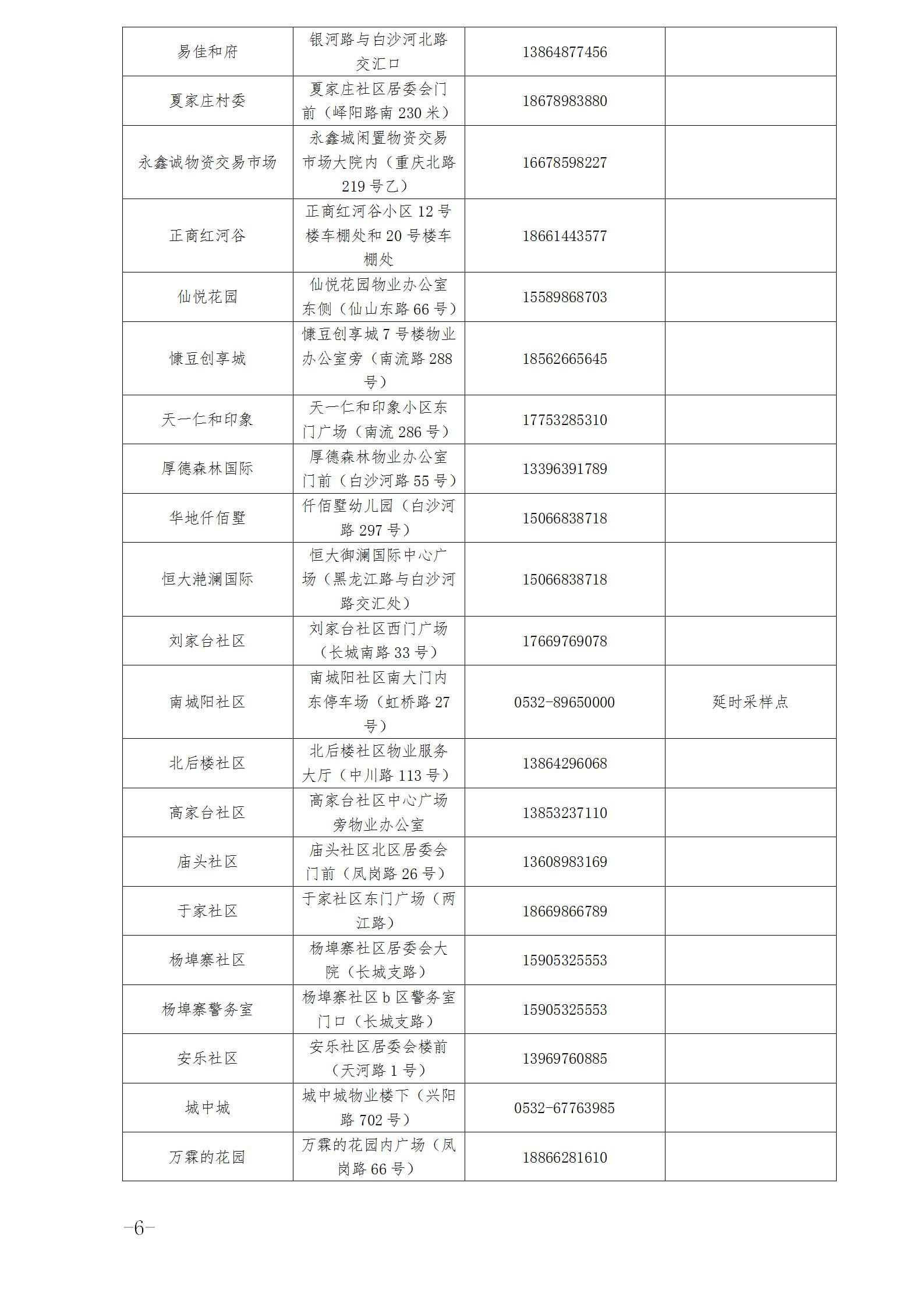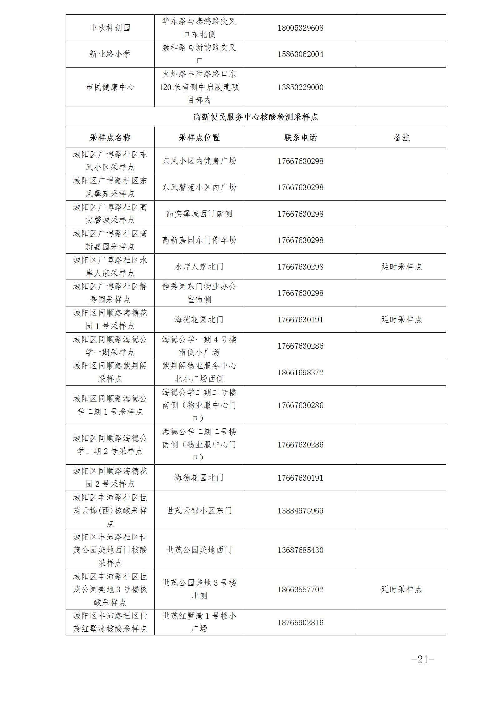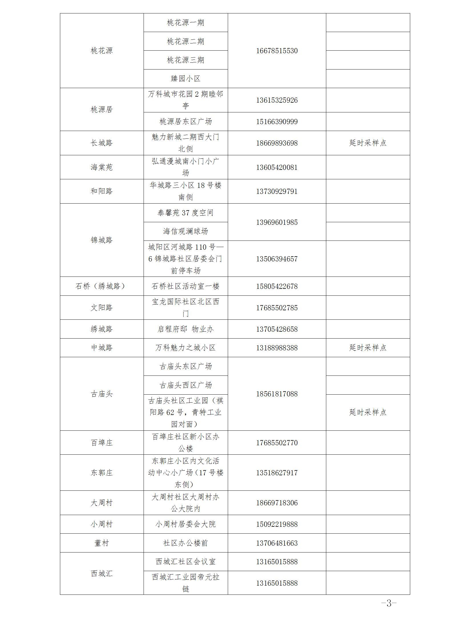 各街道、高新区防指办、高新便民服务中心就近设置采样点(采样点信息附后),请关注区及各街道、高新区防指办、高新便民服务中心发布的信息。