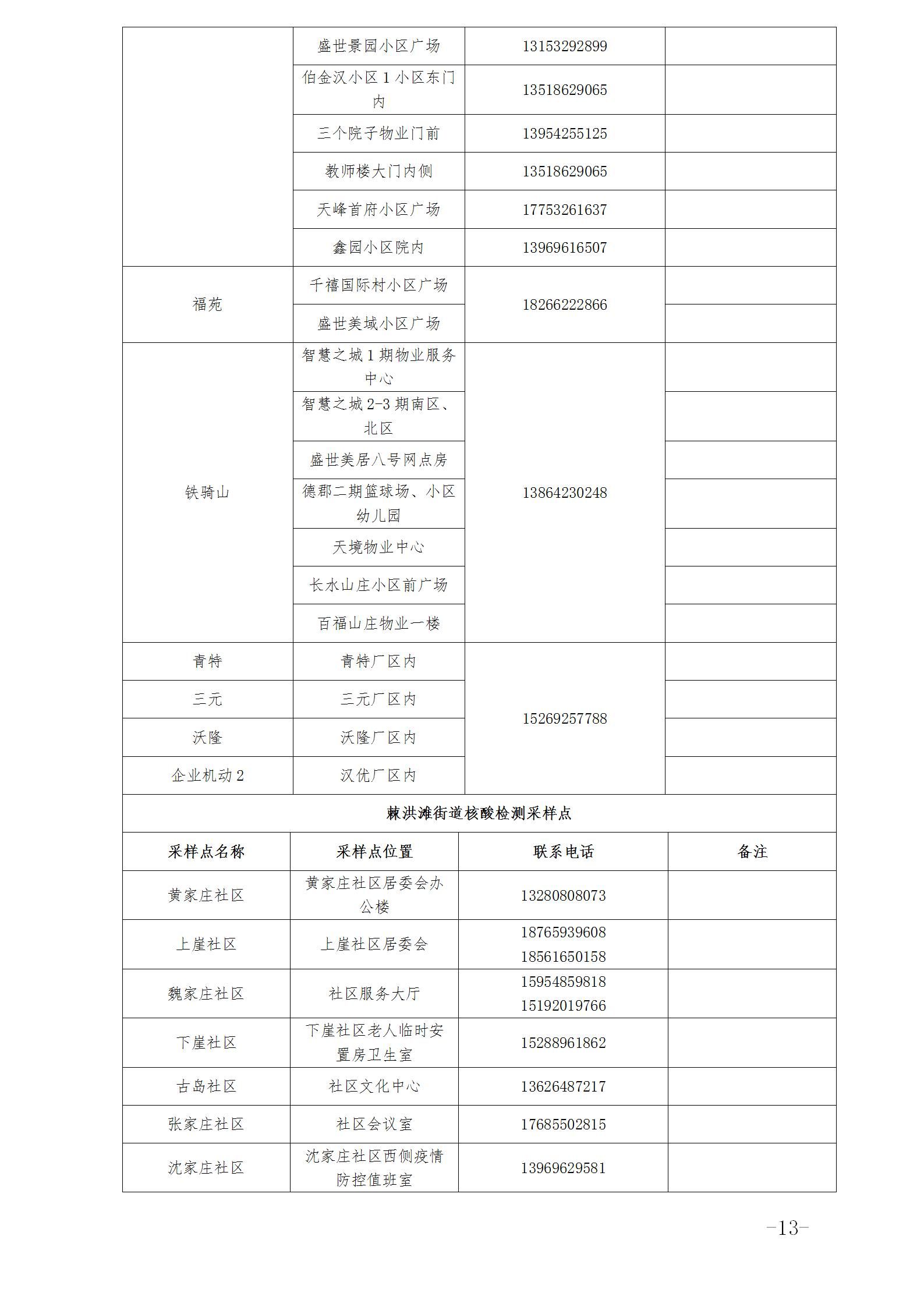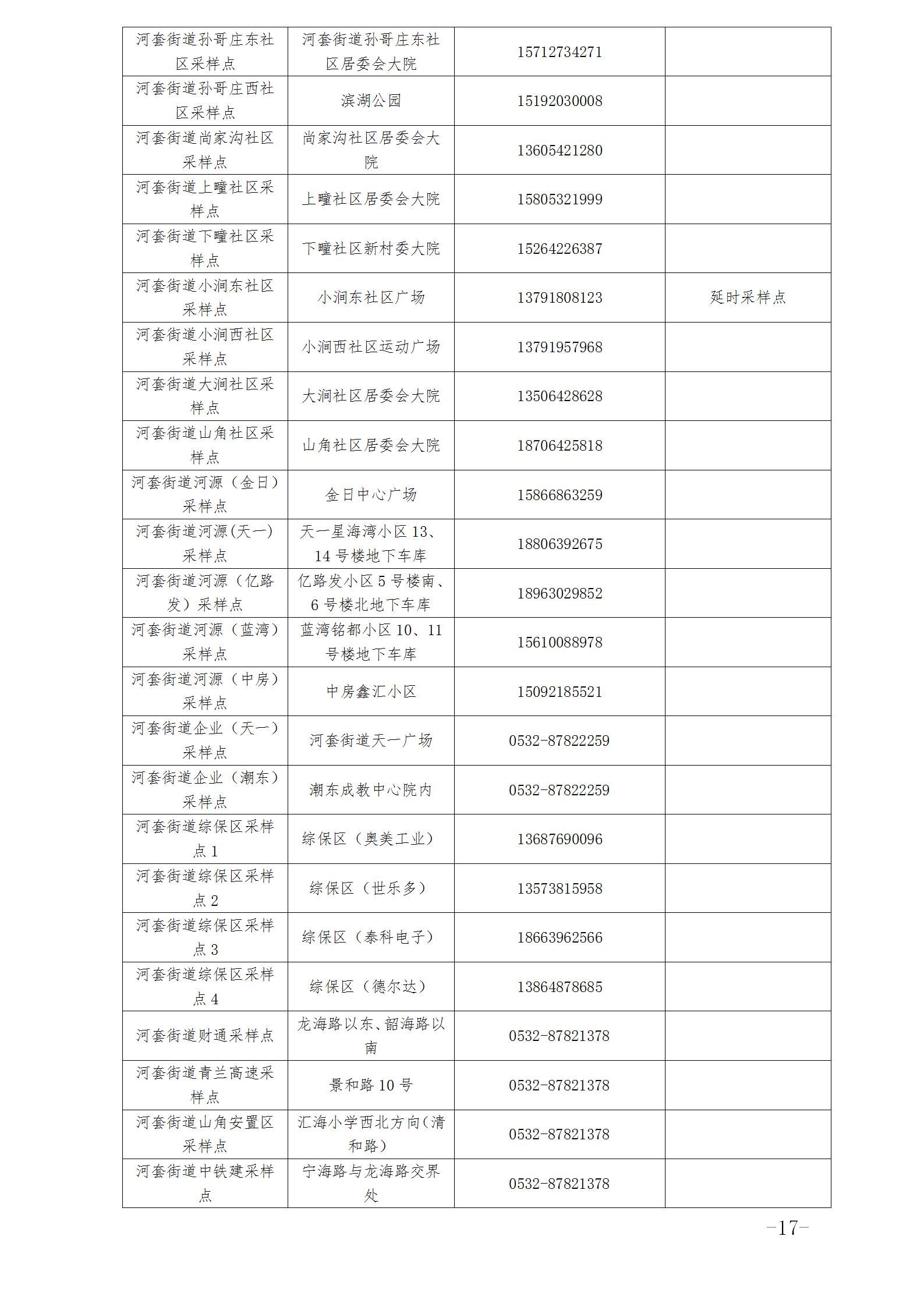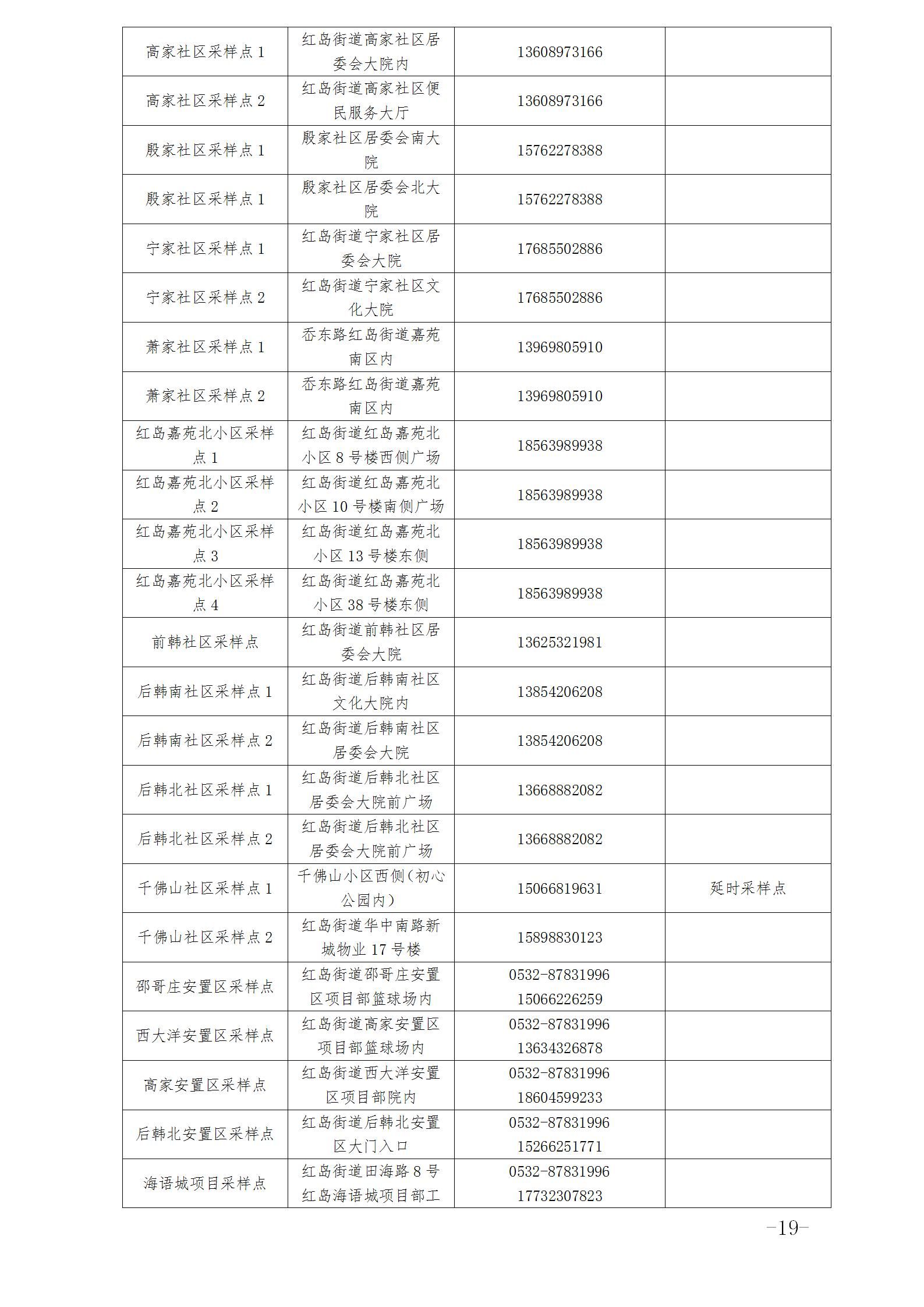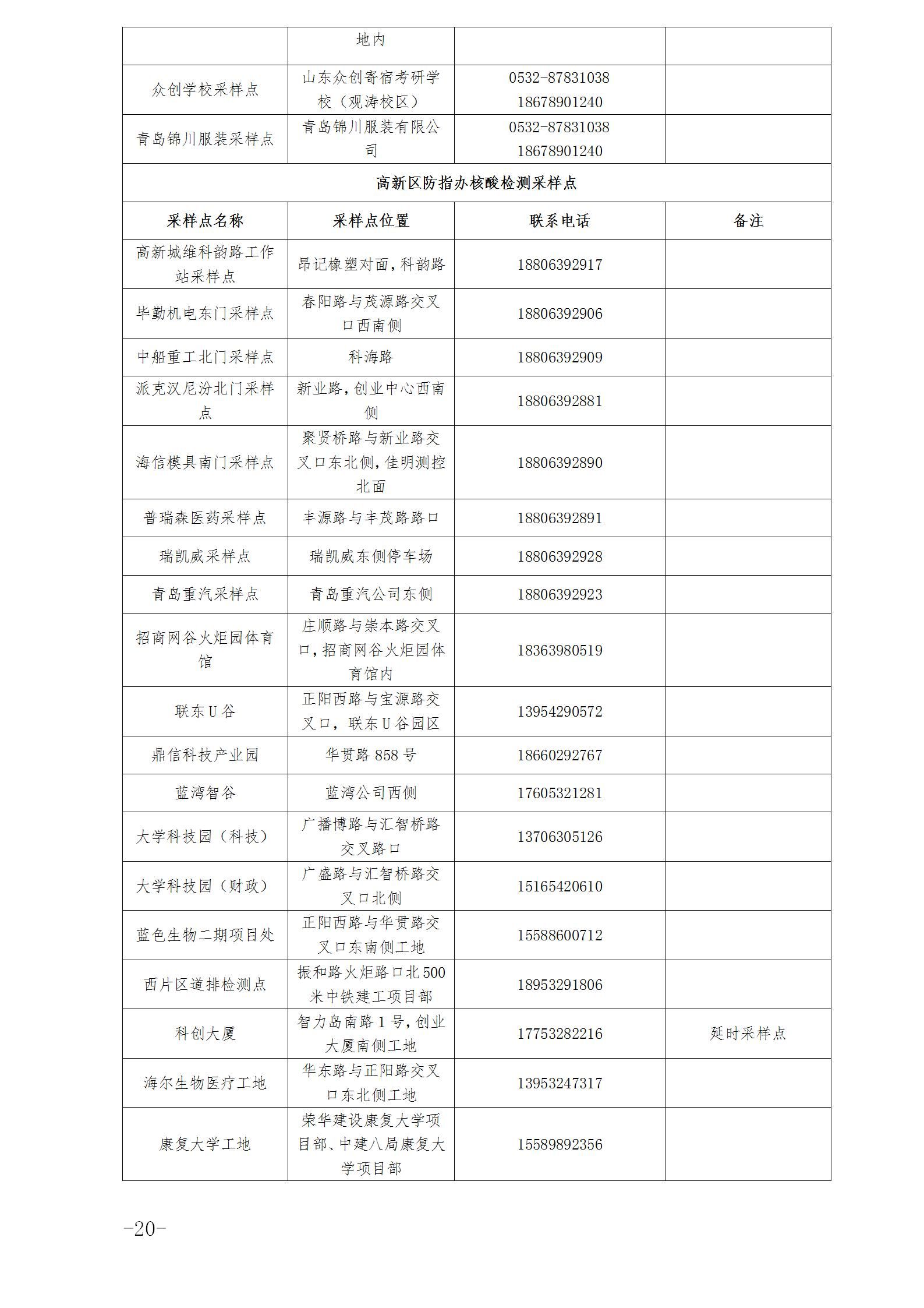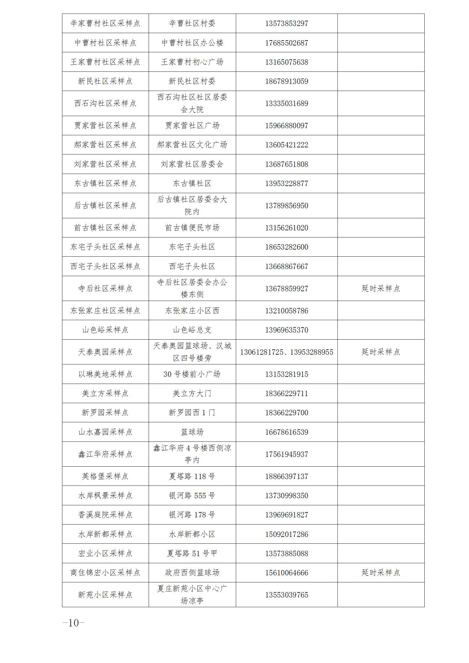 各街道、高新区防指办、高新便民服务中心就近设置采样点(采样点信息附后),请关注区及各街道、高新区防指办、高新便民服务中心发布的信息。