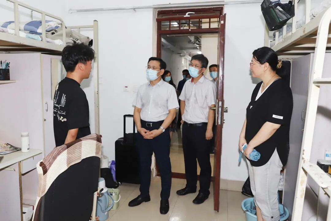 在北海苑学生宿舍,田辉向学生了解了返校后生活情况,嘱咐他们认真做好个人防护,按时做好核酸检测,加强体育锻炼,提高身体素质,以最佳状态投入到新学期的学习生活中。