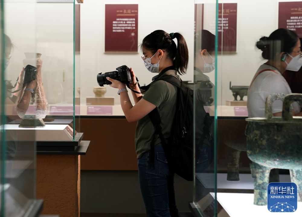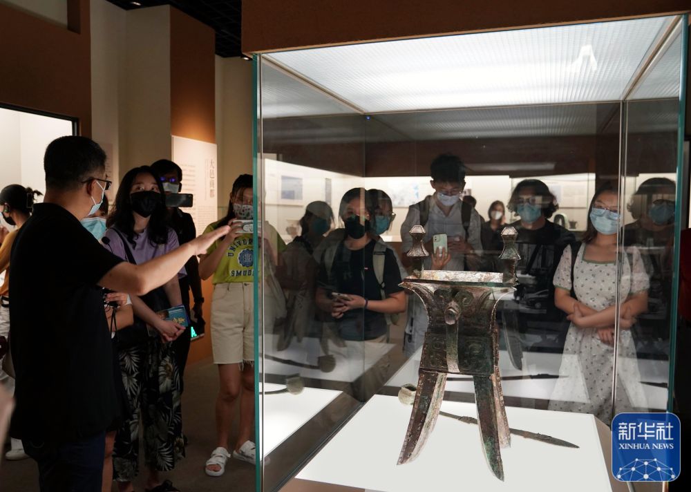 当日,来自复旦大学、上海交通大学、华东师范大学等多所高校的中外学生代表,走进上海博物馆,观看正在举行的“宅兹中国——河南夏商周三代文明展”,聆听国宝文物“讲述”中国故事。新华社记者 刘颖 摄影报道