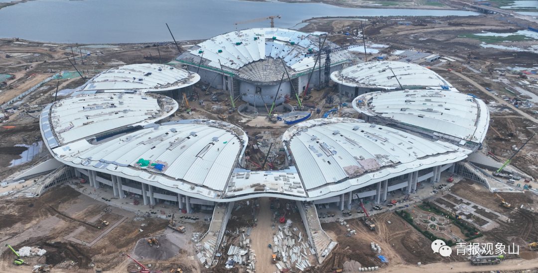 “该项目的亮点在于其外形,采用连续起伏的金属屋面,巧妙结合建筑功能,设置一圈珍珠形采光窗点缀在屋面上,犹如一串明珠项链镶嵌在扇贝上。”博览中心承建方相关负责人表示,外侧结合拉索幕墙打造超大尺度观海视野,力求充分展现“上合元素”、青岛滨海特色、山东文化底蕴和中国开放包容的时代形象。
