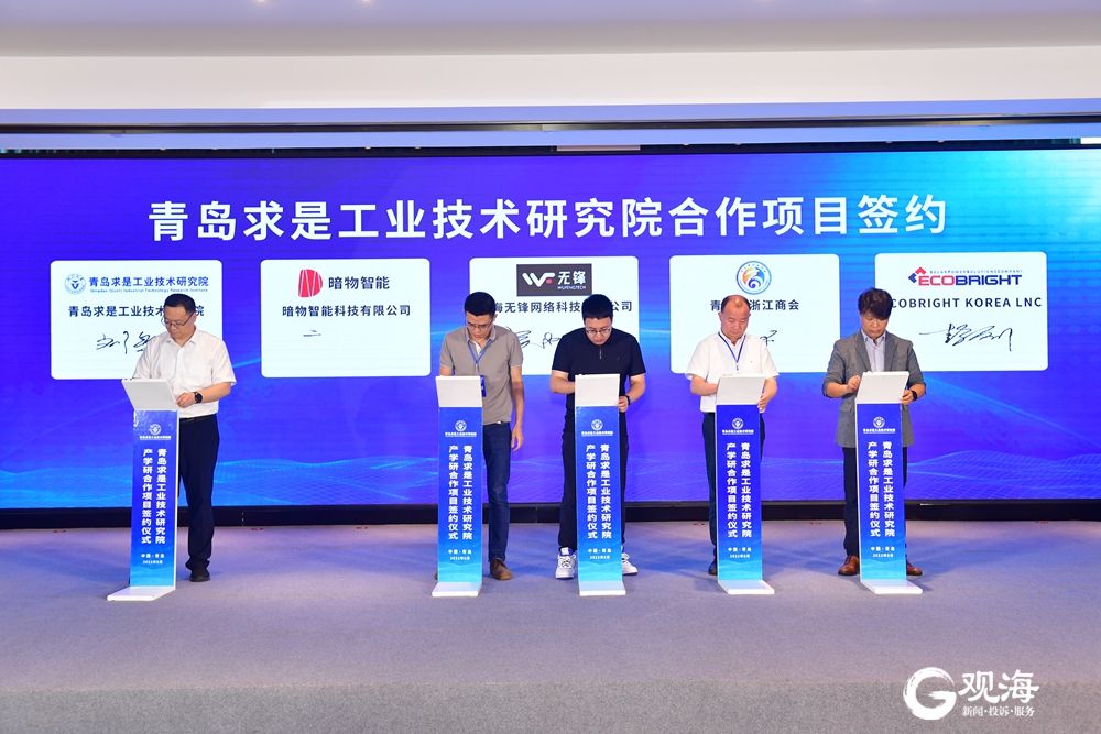 作为创新创业孵化平台,青岛求是工研院针对青岛市重点发展领域引进和孵化了多家企业入驻青岛西海岸新区。活动现场,海尔智家股份有限公司、以萨技术股份有限公司等8家规上企业与工研院签署合作协议,通过共建技术中心、揭榜挂帅、联合申报国家重大专项等多种形式,共同推动联合科技攻关,实现跨界技术深度融合。石墨烯多能场耦合反应制备系统项目、小管径平行流换热器设计软件项目等10个孵化项目正式落地工研院。以上项目涵盖新材料、智能制造、数字经济、环保等相关产业,多项技术国际领先、市场前景广阔。