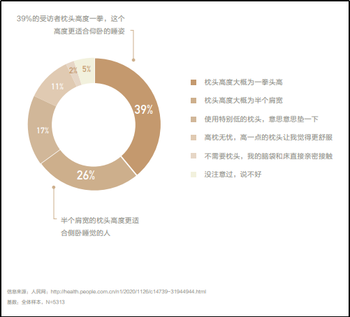 老话常说,高枕无忧。寓意垫高枕头,就可以无忧无虑地睡觉。在本次调研数据中,有17%的受访者也认为,高枕能够让自己睡得很舒服。但其实,这并不是一个很好的睡眠习惯。过高的枕头容易使颈椎前屈,从而加重颈椎病。