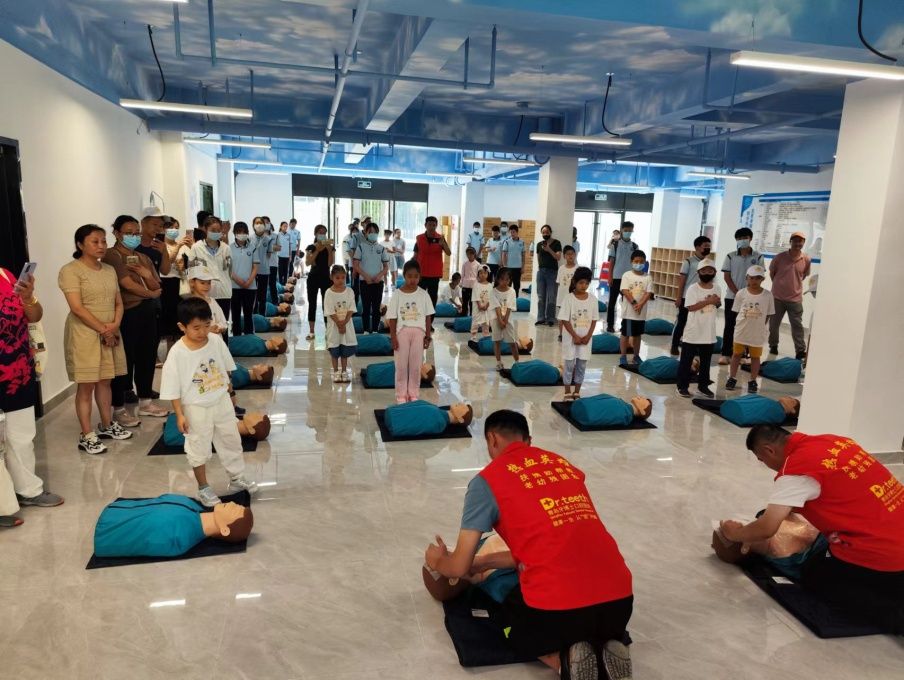 活动特邀了青岛热血英雄救助志愿服务队的专业人员来教授急救相关知识,现场老师通过集中教学和一对一的操作指导,利用急救演习道具,为大家细致讲解应急救护的流程与技巧,并通过现场反复培训演习,规范学员们的操作要领,使居民能够熟练掌握心肺复苏、海姆立克急救法等急救知识。