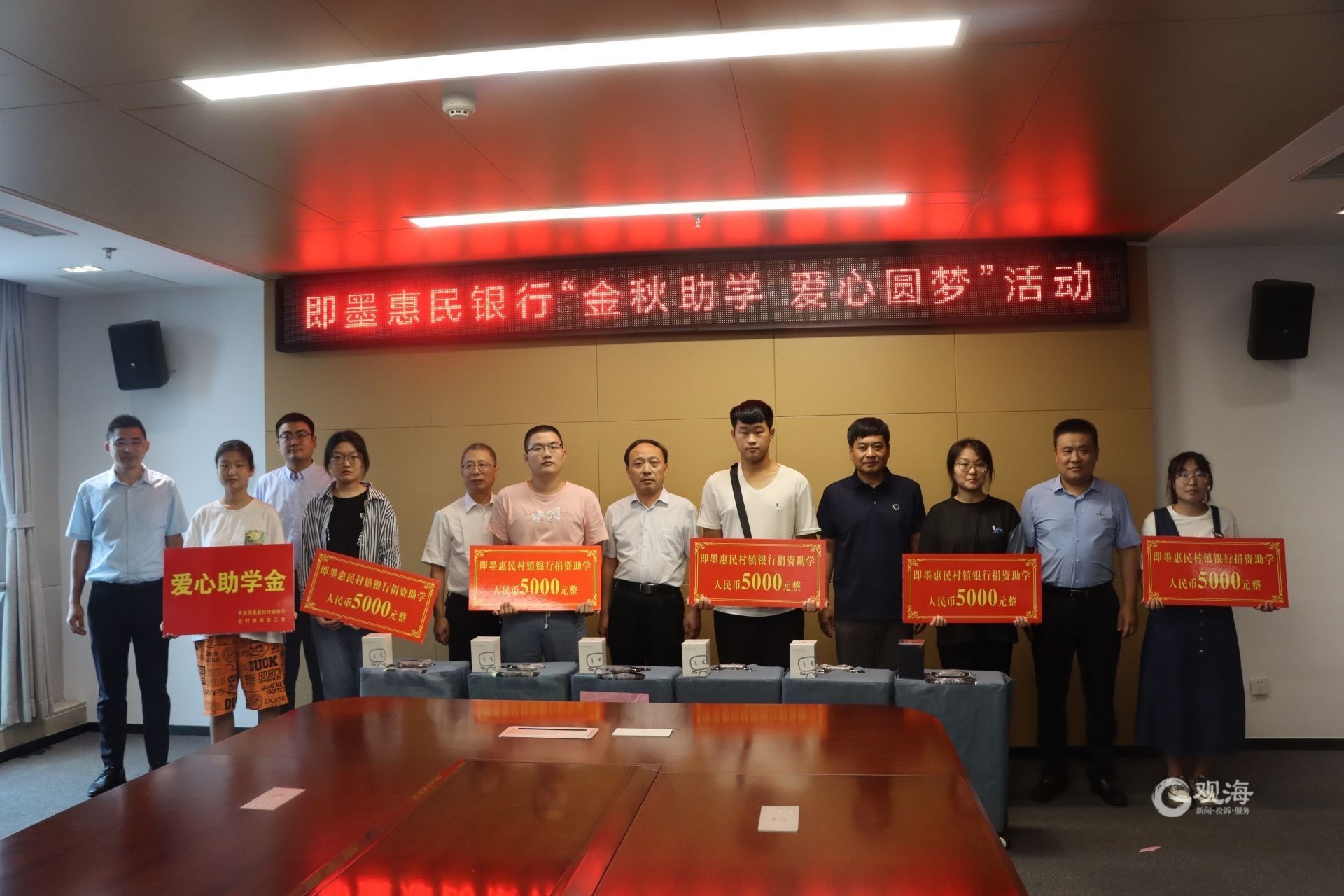 活动当天,蓝村街道联合青岛即墨惠民村镇银行举行了“金秋助学 爱心圆梦”活动,仪式上,即墨团区委和蓝村街道主要领导、即墨惠民村镇银行负责同志为贫困大学生发放了由即墨惠民村镇银行赞助的奖学金和助学物资,并勉励他们好好学习,牢固树立成才报国、回报家乡的信念,争取学成后为国家、为家乡的经济建设和社会发展多做贡献。