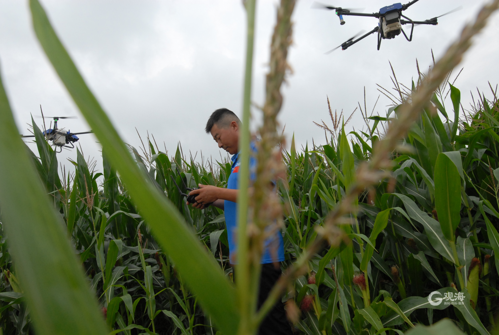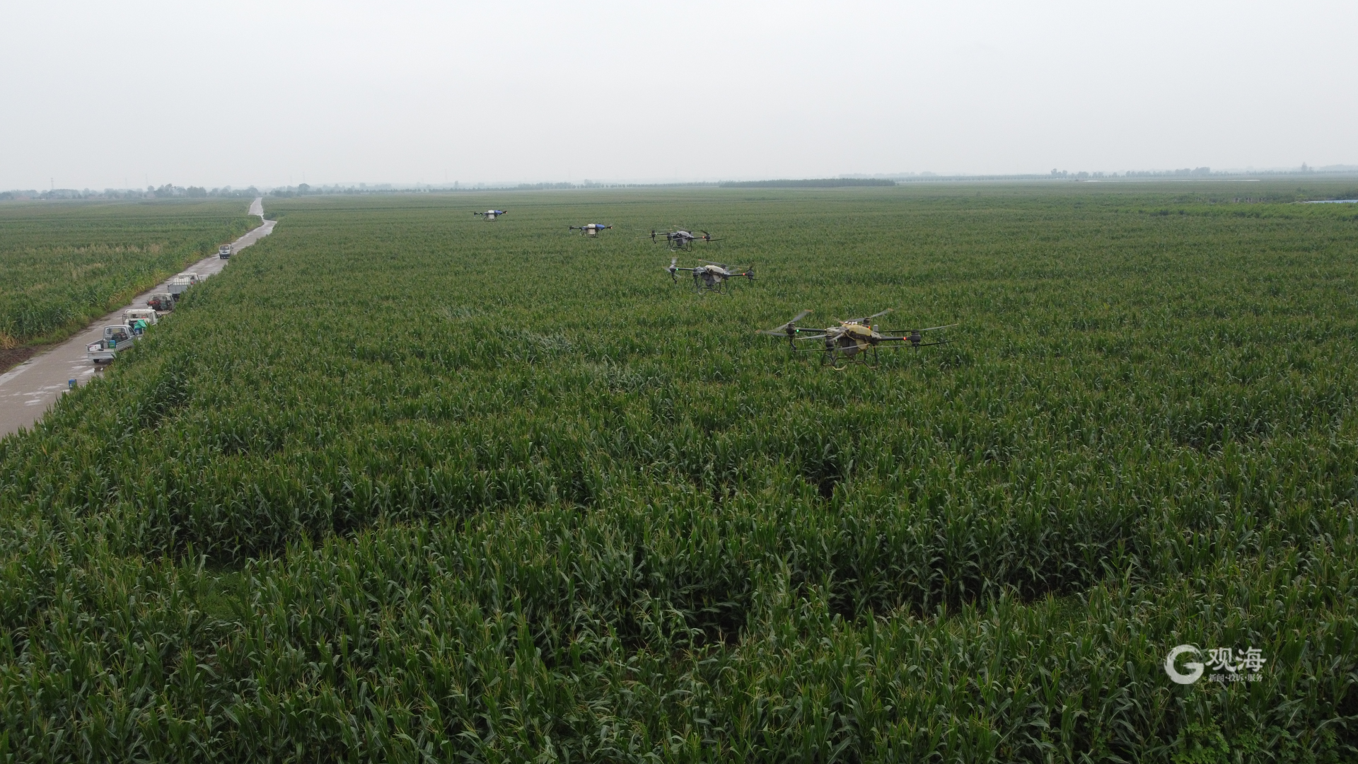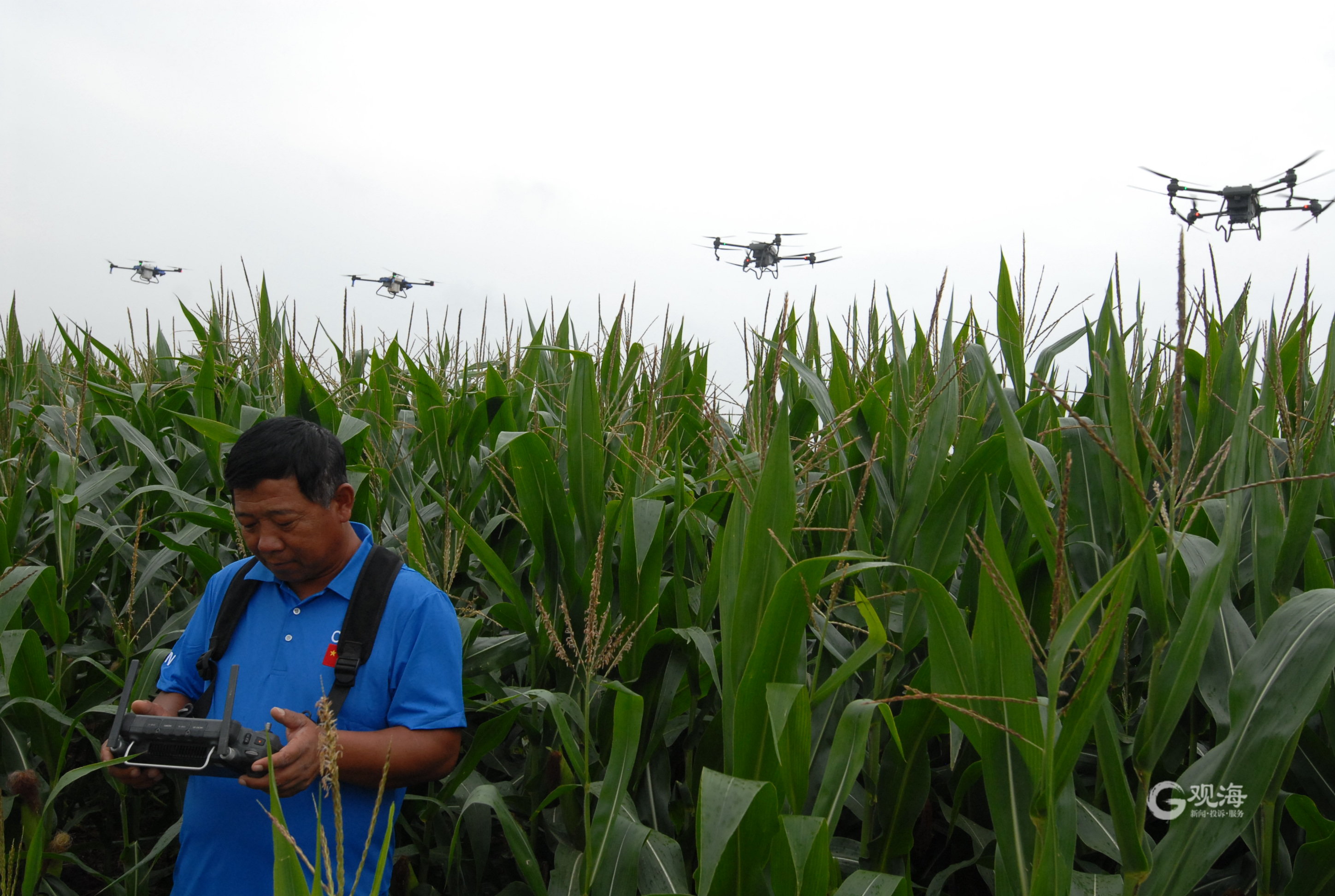 青岛日报社/观海新闻8月30日讯 今天上午,在即墨区灵山街道于家辛庄村,五架无人植保机开始对玉米地块进行飞防作业。