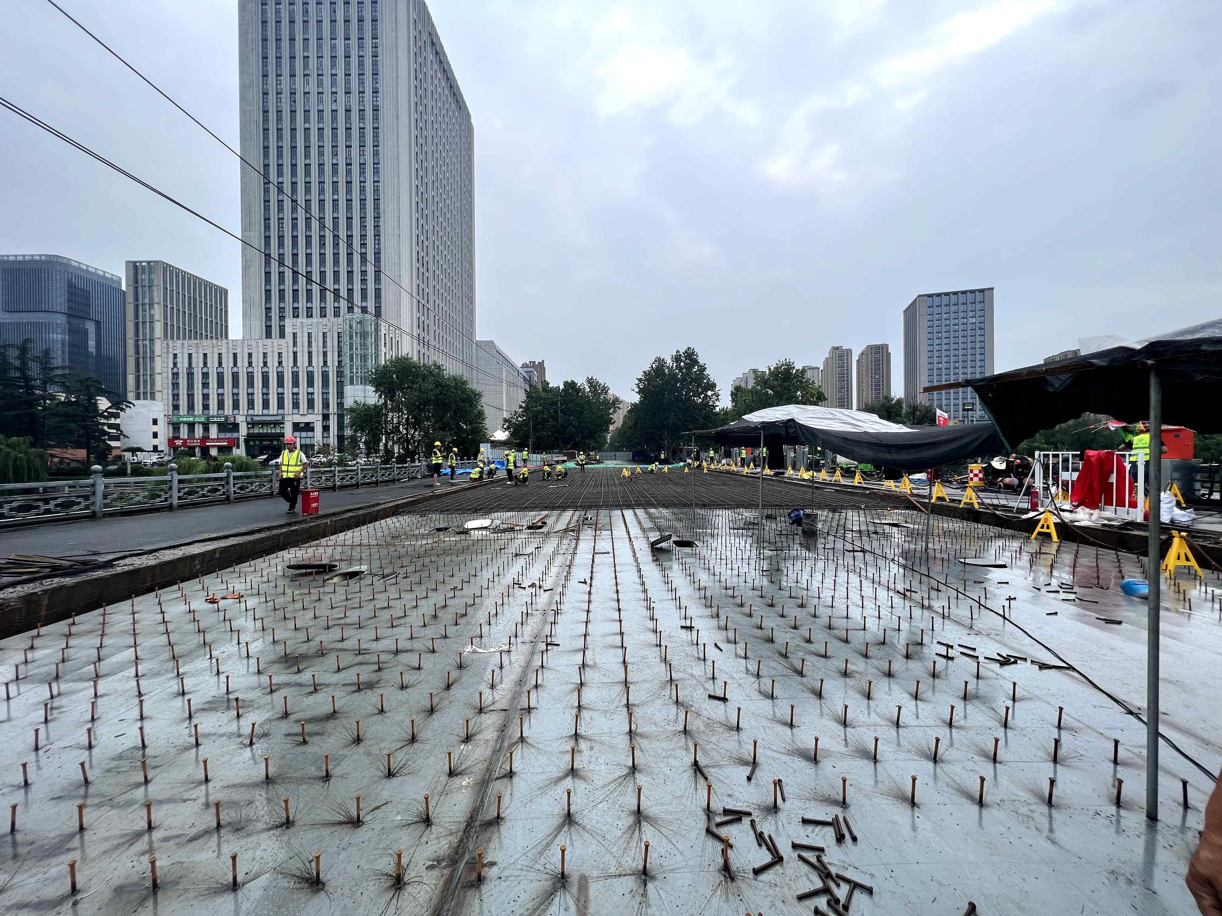 “我们克服了将近20天的雨季和高温天气的不利影响,采取支撑棚膜雨天施工、早班晚班错开高温时段等措施,千方百计确保工期。”据中交一公局府东桥加固改造工程工区主任于在洋介绍,即使阴雨连绵,施工人员也在临时搭起的棚膜下进行钢箱梁的装配焊接,上千度的焊割枪温度、汗水浸湿衣衫,大家依然不叫苦不叫累,坚持施工。