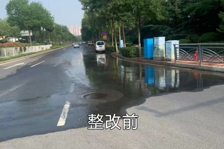 “这个路口有时会出现积水,晴天时井盖内也会有水溢出,可能是管道破裂了。”据网友介绍,溢水的井盖周边有学校、住宅区、建材市场,来往车辆、行人较多,路面积水给周边的出行环境带来安全隐患。