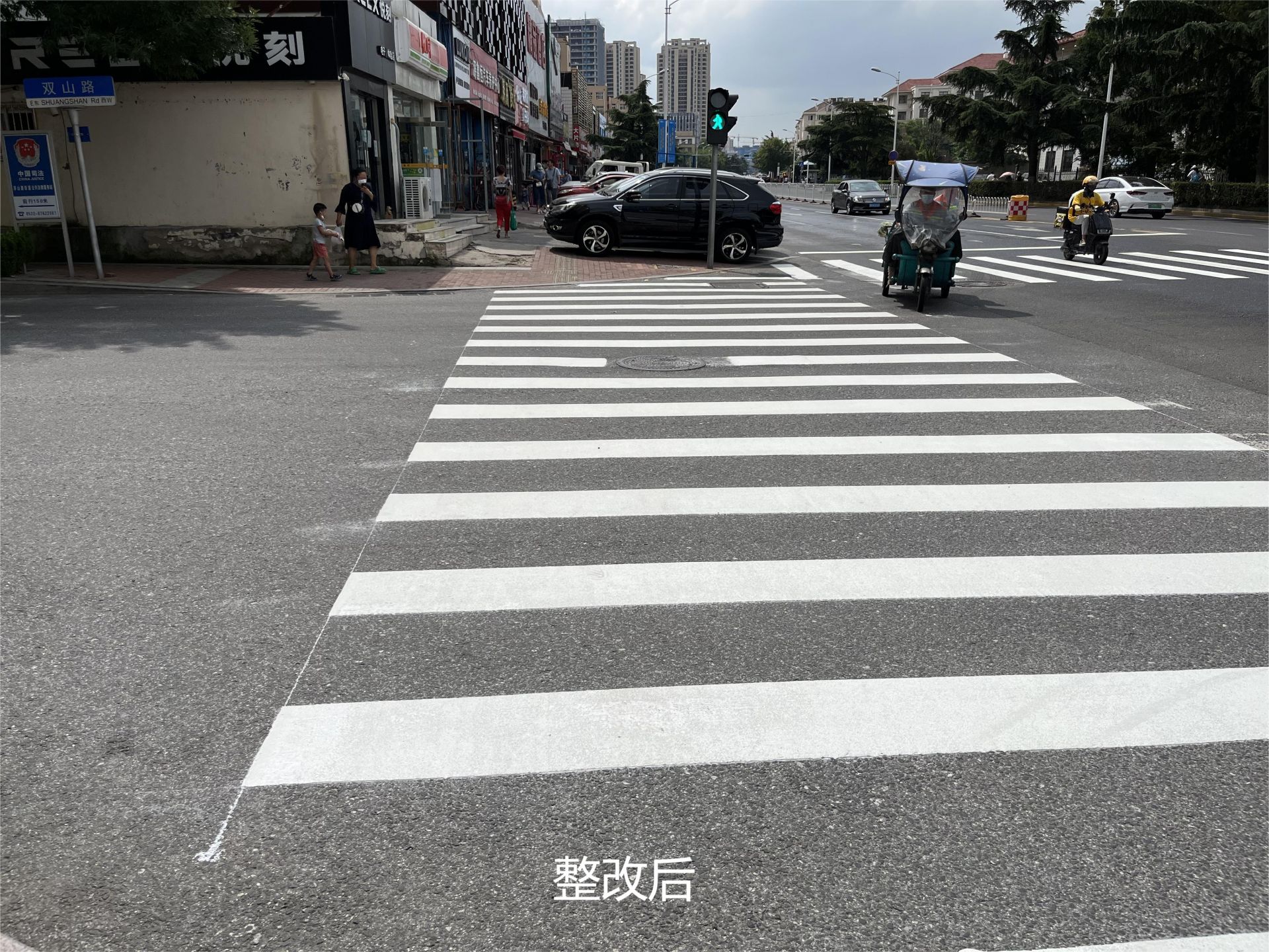 近日,记者在李沧区万年泉路、双山路路口看到,路口处重新施划了人行横道标线,补齐了部分磨损的车行道标线。道路标线焕然一新,行人通行有序。