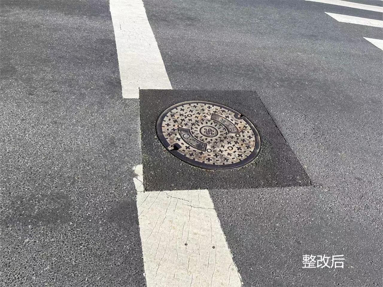 近日,记者来到崂山区劲松五路、同兴路路口回访看到,路口处松动脱落的井盖已复位,路面不再“敞口”,井盖周边铺设了方形区域的沥青以作固定。过路车辆从井盖上驶过,通行顺畅。