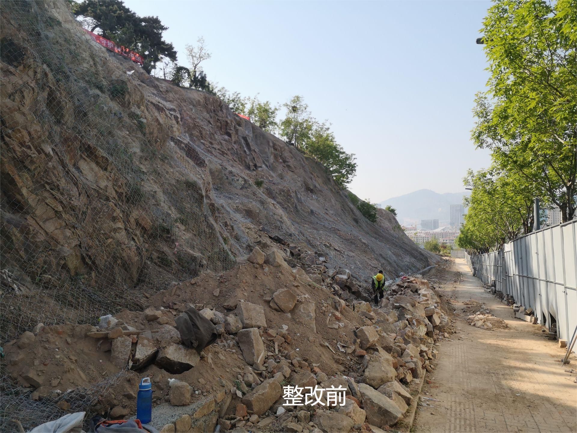 近日,记者在李沧区汉川路西侧看到,汉川路边坡地质灾害点整治工程已完成,山体边坡加固后焕然一新,人行道恢复畅通。