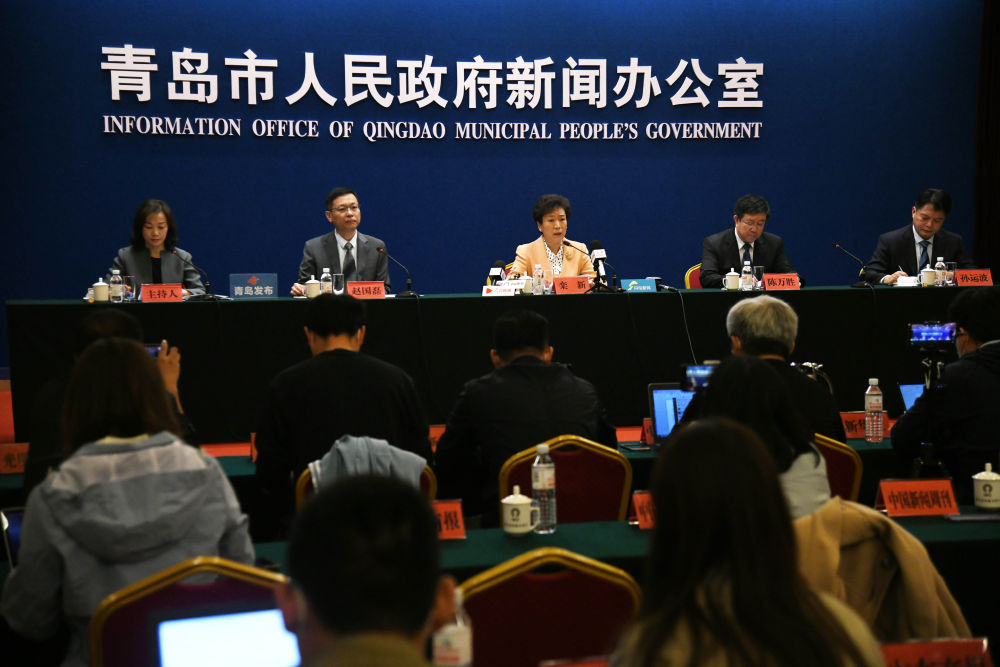 10月15日,青岛市召开疫情防控情况新闻发布会。新华社记者李紫恒摄