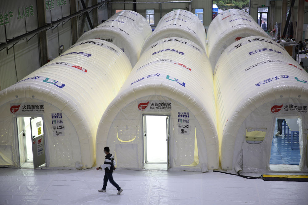 10月14日,青岛气膜版“火眼”实验室主体完工,并于当晚投入使用。(张进刚 摄)