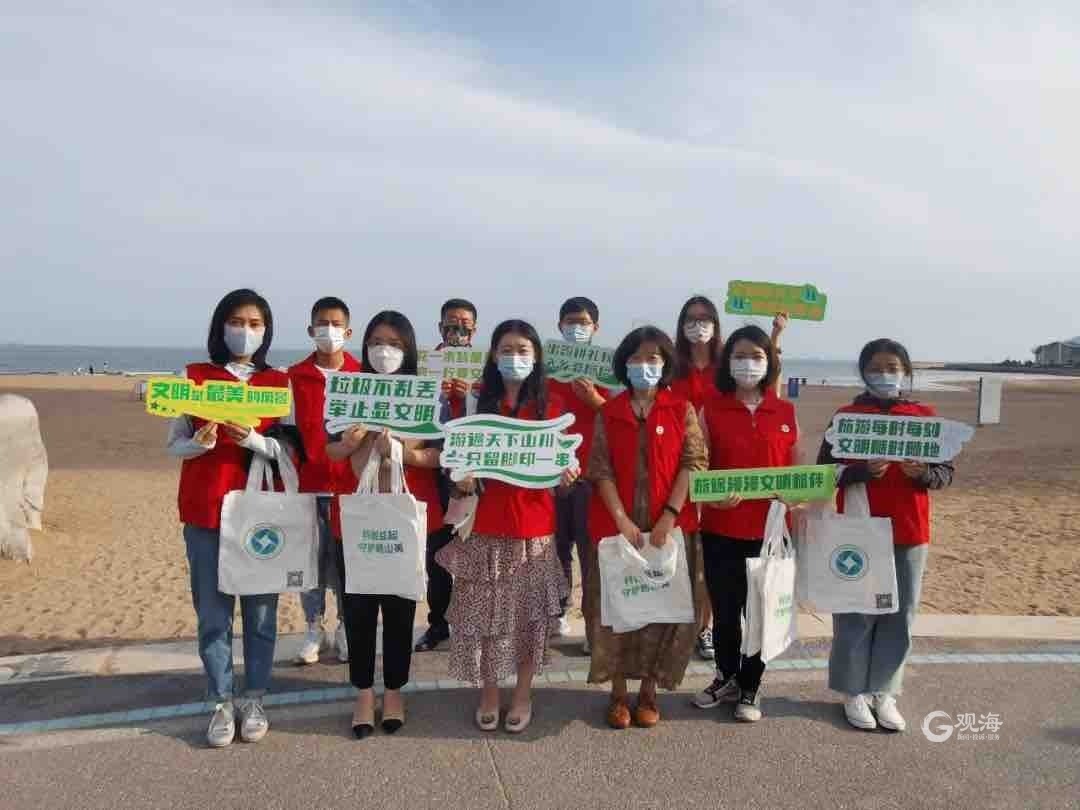 崂山区巨峰科创绿光志愿服务队组织“文明旅游计划”活动,11名志愿者到石老人海水浴场进行文明旅游宣传,让游客们感受到文明旅游的益处与重要性,让“文明旅游,你我同行”的理念深度培植。
