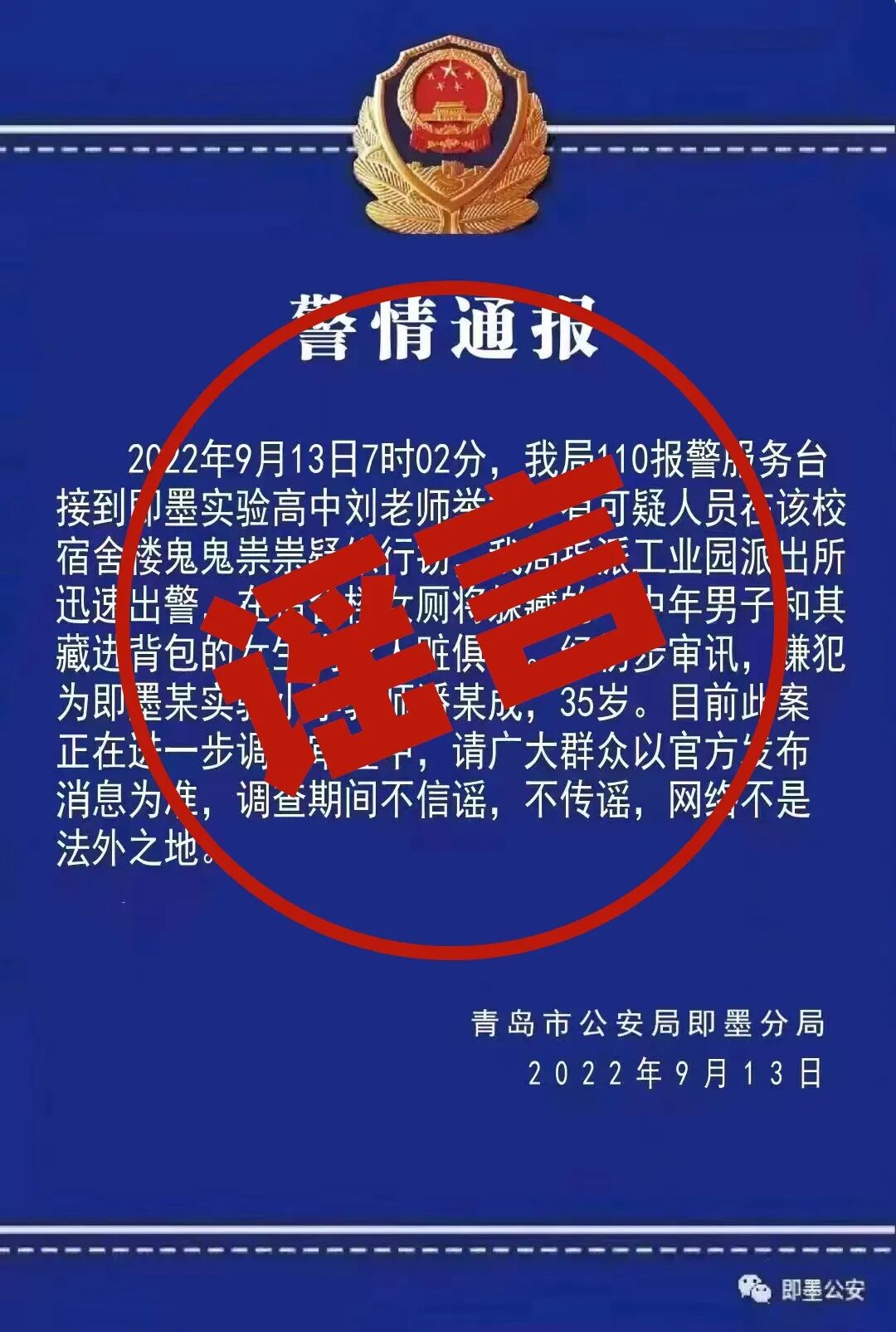 近日,一则“工业园派出所侦办一起盗窃案件”的警情通报在网上流传,该“警情通报”系谣言。即墨警方未发布此类警情通报,该内容属于虚假信息。