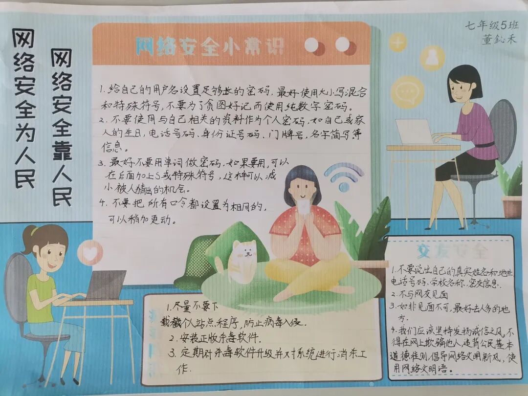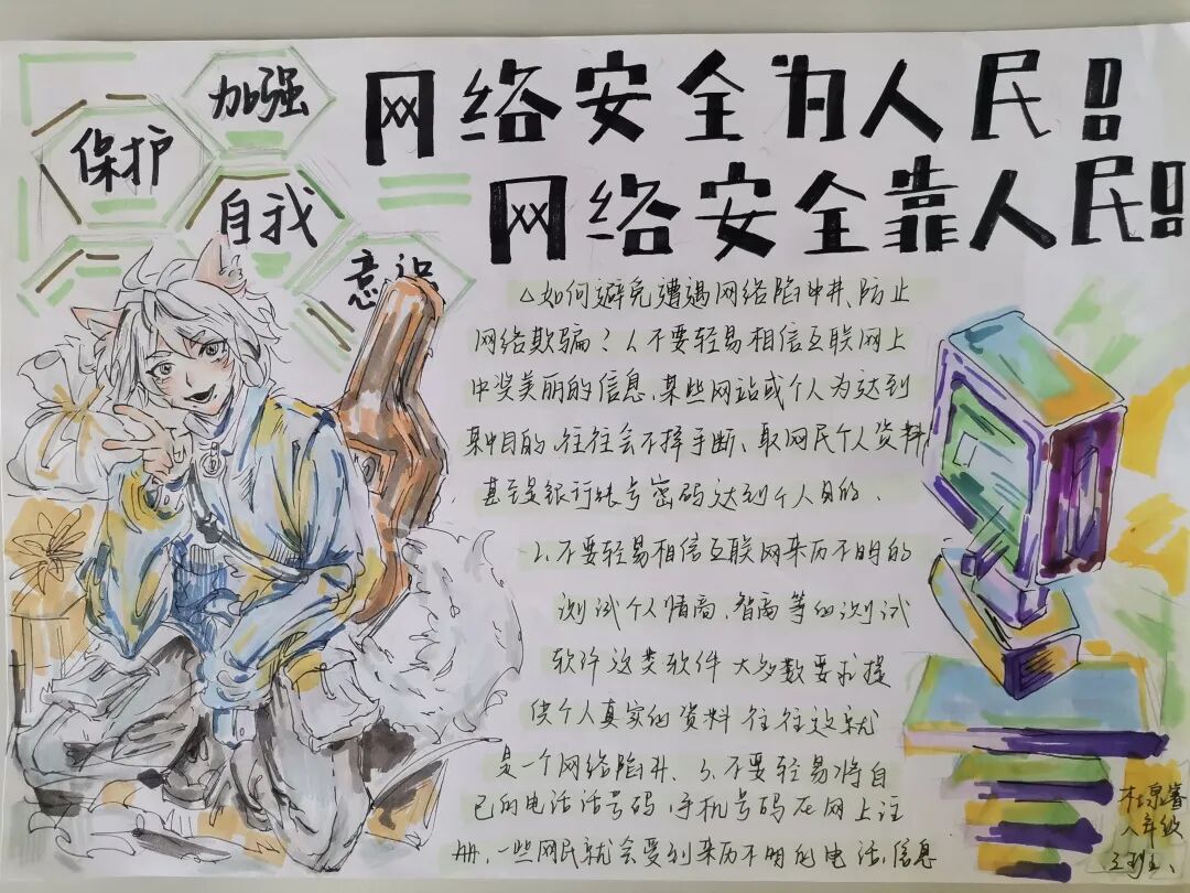 “网络安全为人民 网络安全靠人民”,学生们用自己的生花妙笔普及网络安全防护知识,引导同学们正确认识、科学对待、合理使用网络,共同营造健康文明的校园网络环境。以下同学获得优秀奖↓↓↓