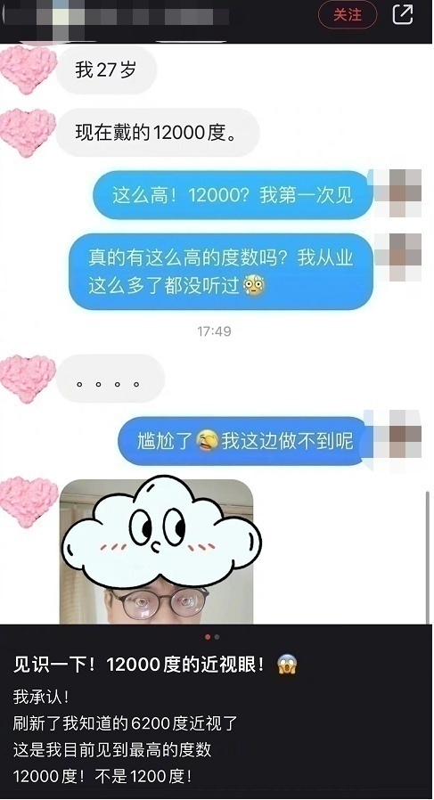 “近视12000度是种什么体验”上了热搜
