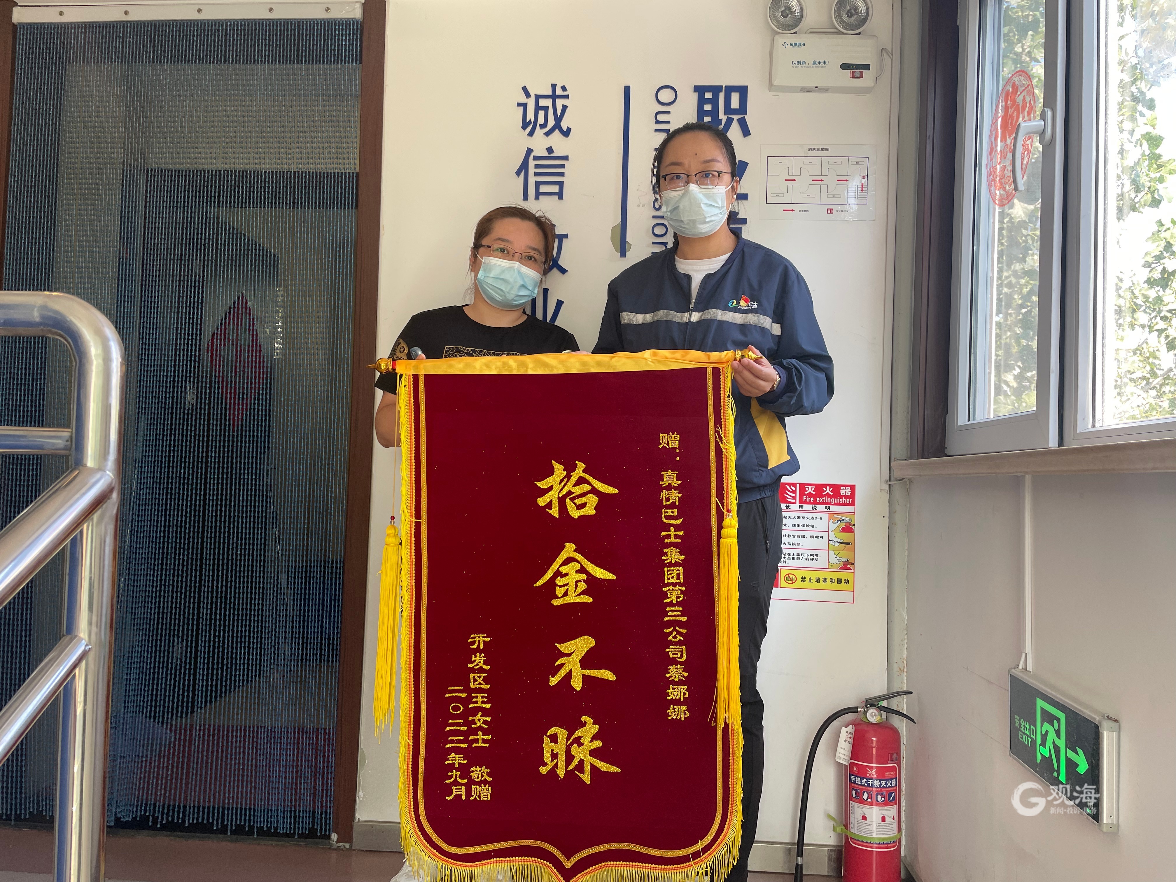 无独有偶。9月21日,市民王女士也来到了真情巴士太行山路场站,将一面写有“拾金不昧”的鲜红色锦旗交给了工作人员,“请一定代我好好谢谢19路蔡娜娜师傅,是她帮我找回了我丢失的钱包!”原来,9月15日,王女士在乘坐19路公交车时,不慎将装有手机、2000元购物卡、200元现金和两张社保卡的钱包落在了公交车上,当班驾驶员蔡娜娜拾金不昧,及时按照规定流程进行了登记,使王女士顺利找回了钱包。王女士心中感激,专门制作了锦旗,并登门感谢蔡娜娜。