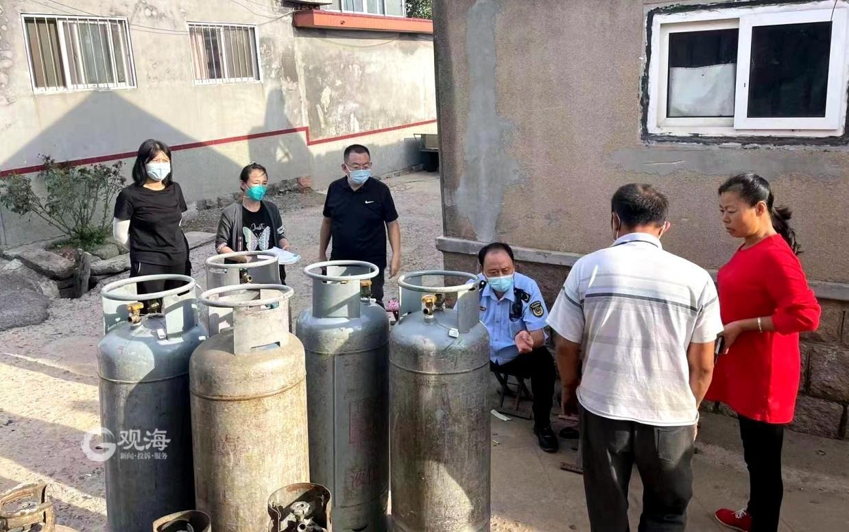 当天下午,即墨区住房城乡建设局接到群众举报,反映龙泉街道后麦泊村有人家中储存了大量液化气钢瓶。经过对配送工人信息查询、属地实地查看,此人是某液化气站配送工人杜某。即墨区住房城乡建设局随即联合即墨区龙泉街道、青岛市市场监管局即墨分局、青岛市公安局即墨分局来到龙泉街道后麦泊村联合检查执法。