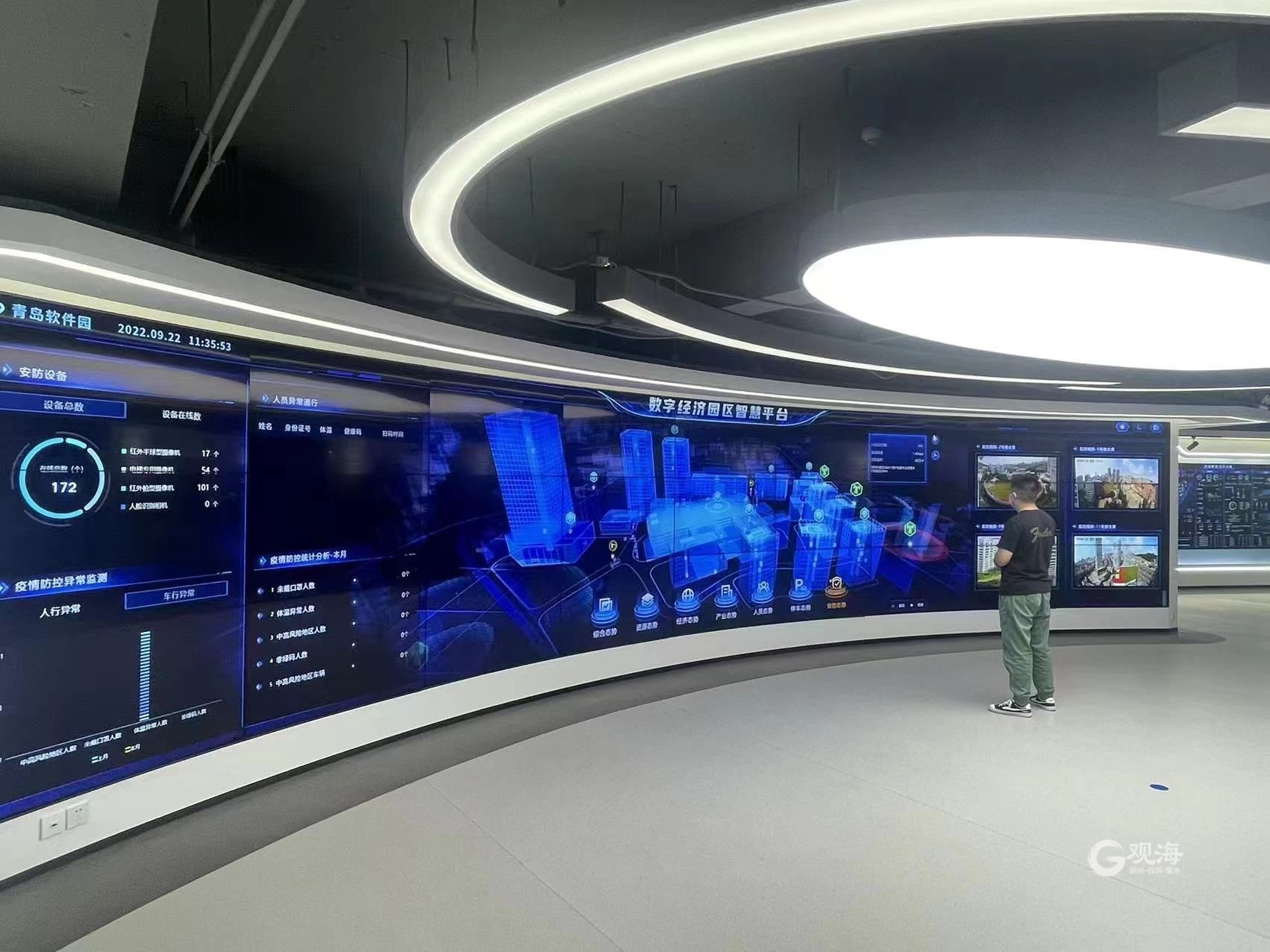 青岛日报社/观海新闻9月28日讯 艳阳高照的金秋时节,从市南区大数据局又传来振奋人心的消息,作为市南区智慧城市建设一期工程的重要组成部分,软件园动漫园智慧园区建设工程近日已告基本收官。“从园区内每一家企业运行的翔实资料和数据,到园区内每一处角落的即时画面,都能在第一时间投放到市南区政府城市云脑中心的大屏幕上啦!”在两园智慧园区总控平台的工作室,工程建设项目经理王澄金欣喜地向记者介绍道。