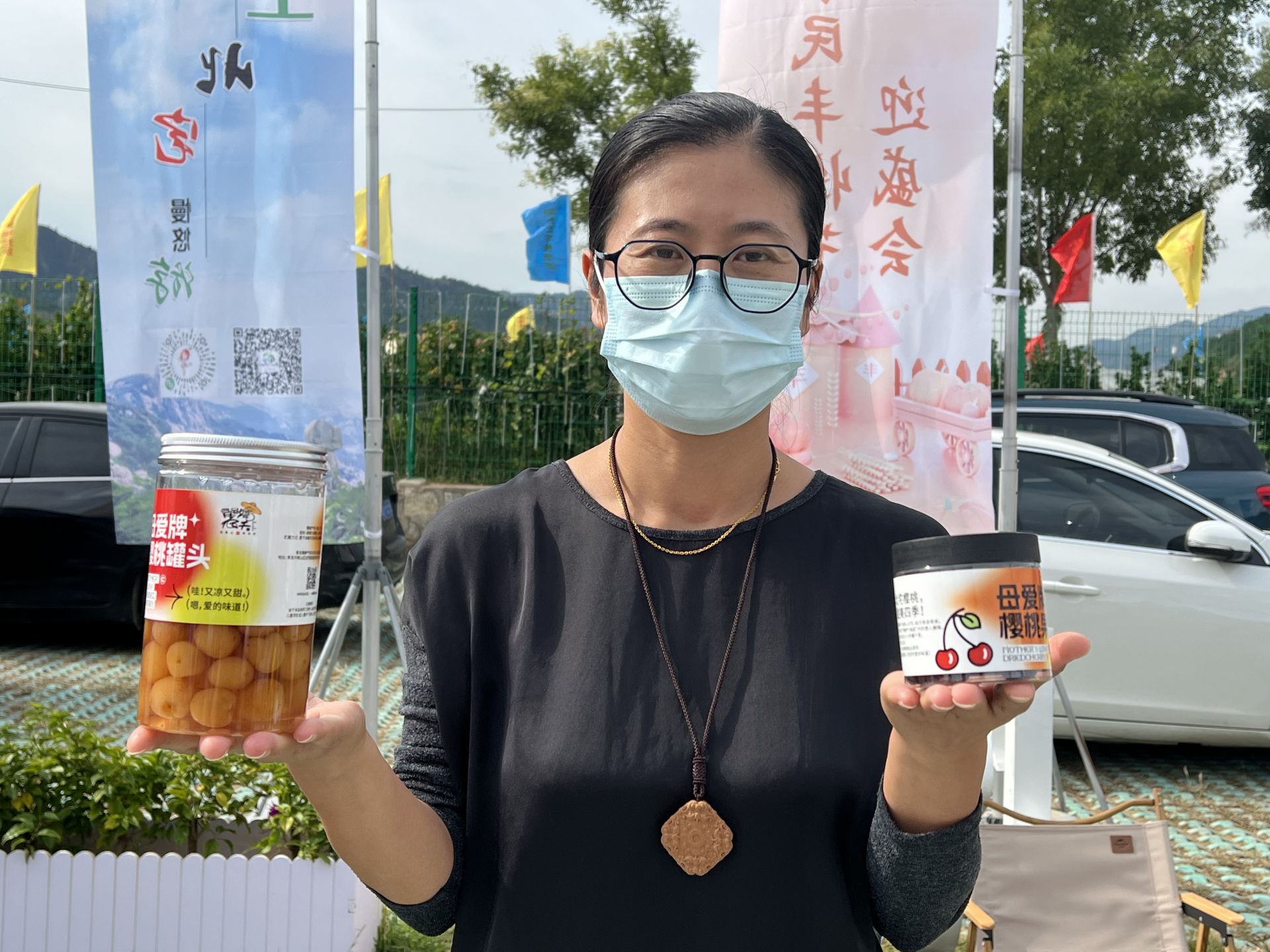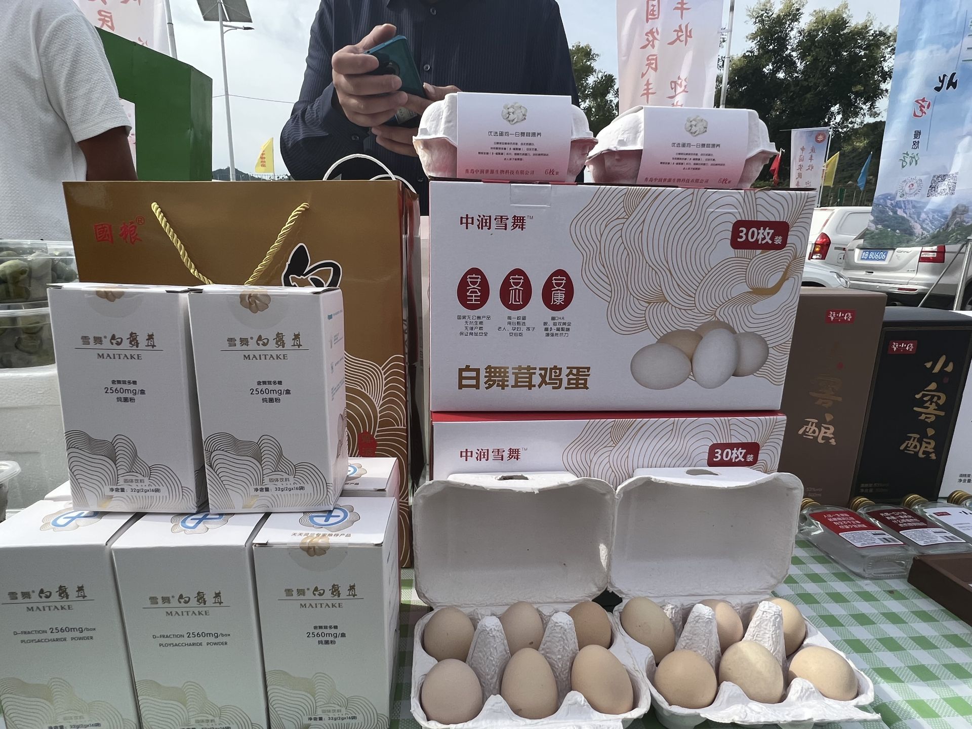 “我们以文创延长农产品的生命周期,提升农产品的附加值,助力北宅特色农产品真正走进千家万户。”山间别院总经理林世保携公司研发推出的北宅樱珠罐头、果脯、白酒等产品来到现场,向与会嘉宾推介深度融入文化创意的北宅特色农产品。“我们今天带来的这款白舞茸鸡蛋是可生食的,产蛋的母鸡都拿白舞茸作为食物,营养价值比普通鸡蛋要高不少呢!”现场,青岛中润世源生物科技有限公司相关负责人王建平不时向往来嘉宾推荐自家展位前的白舞茸产品。