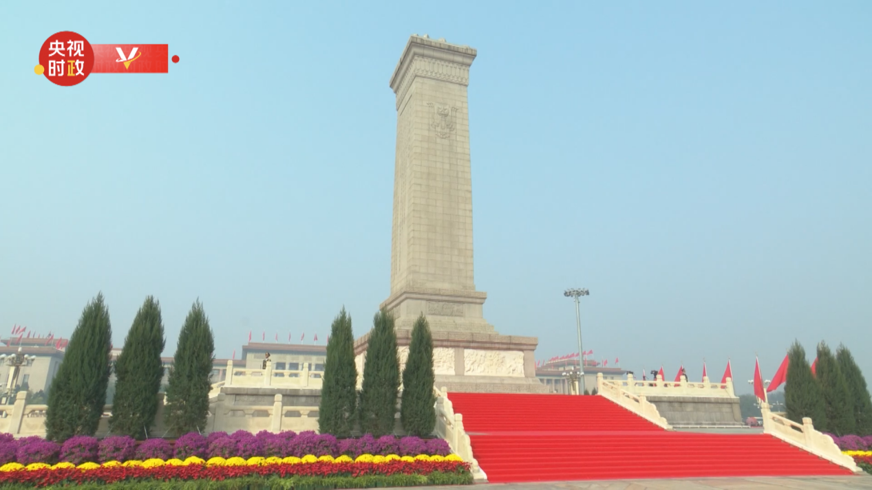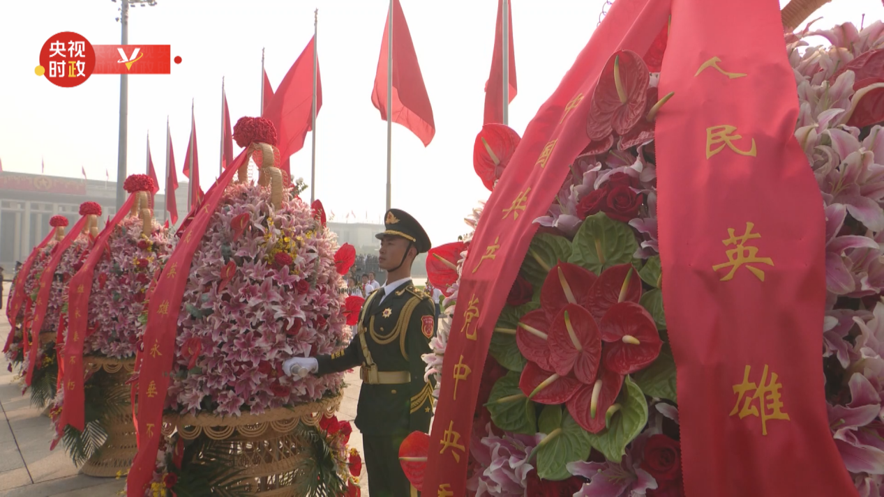 在天安门广场向人民英雄敬献花篮