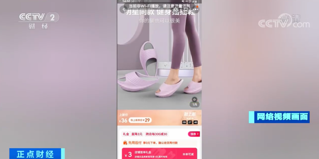 随后记者又走访了几家鞋类门店,也没有找到“摇摇鞋”。而在某购物平台却可以看到,销量较高的店铺月销量可以上千,价格上普遍在30元左右一双,贵的超过两百元。在商家的宣传页面显示,每天5至15分钟,走着“享瘦”,具有矫正腿型、塑型拉筋等功能。