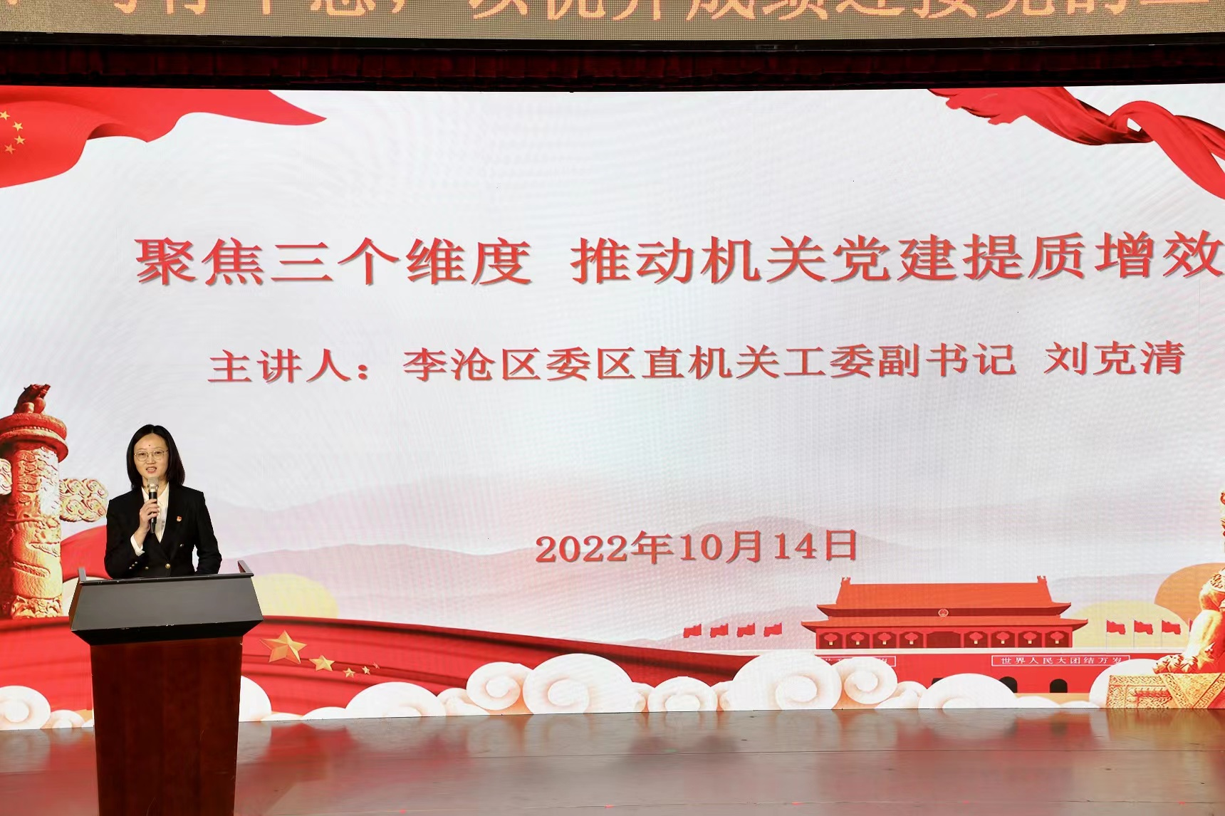 青岛日报社/观海新闻10月14日讯 为迎接党的二十大胜利召开,团结引导全区广大党员干部牢记嘱托走在前,勇担使命开新局,今天上午,由李沧区委组织部主办、李沧区委区直机关工委承办的“喜迎二十大 建功新李沧”主题党日活动在区文化馆举行,并面向全区各级基层党组织线上直播。
