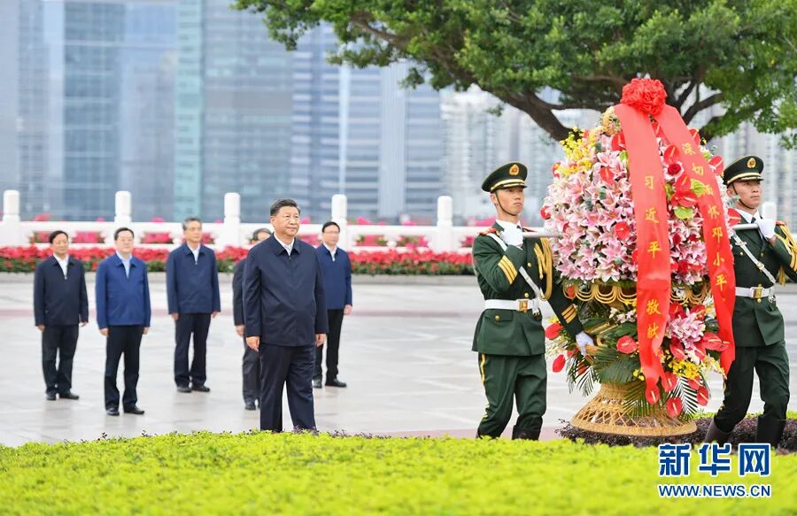 10月14日下午,习近平来到莲花山公园,向邓小平同志铜像敬献花篮。图源:新华社