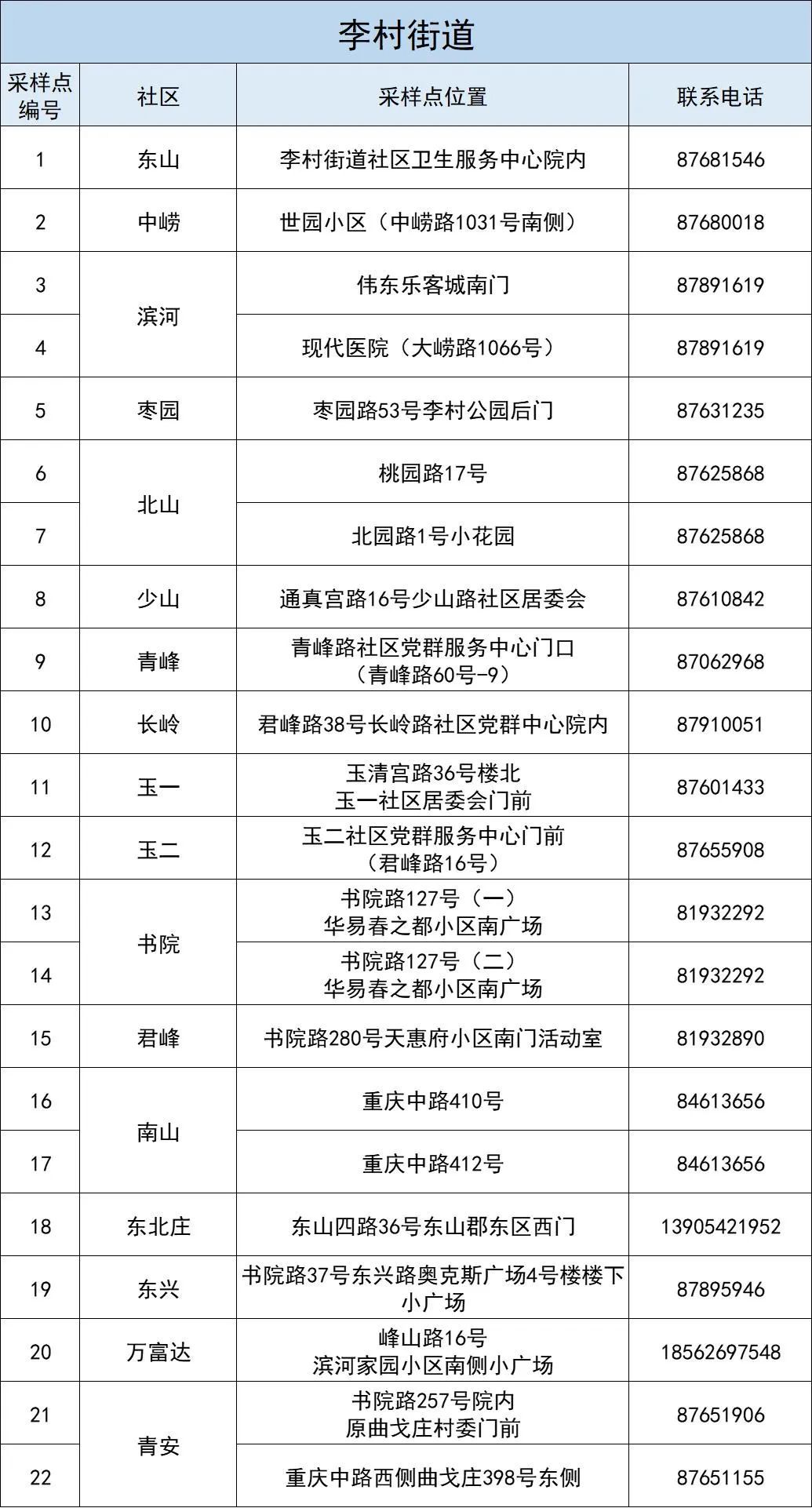 1.李沧区“核酸检测服务圈”采样点详情见本通告下方。