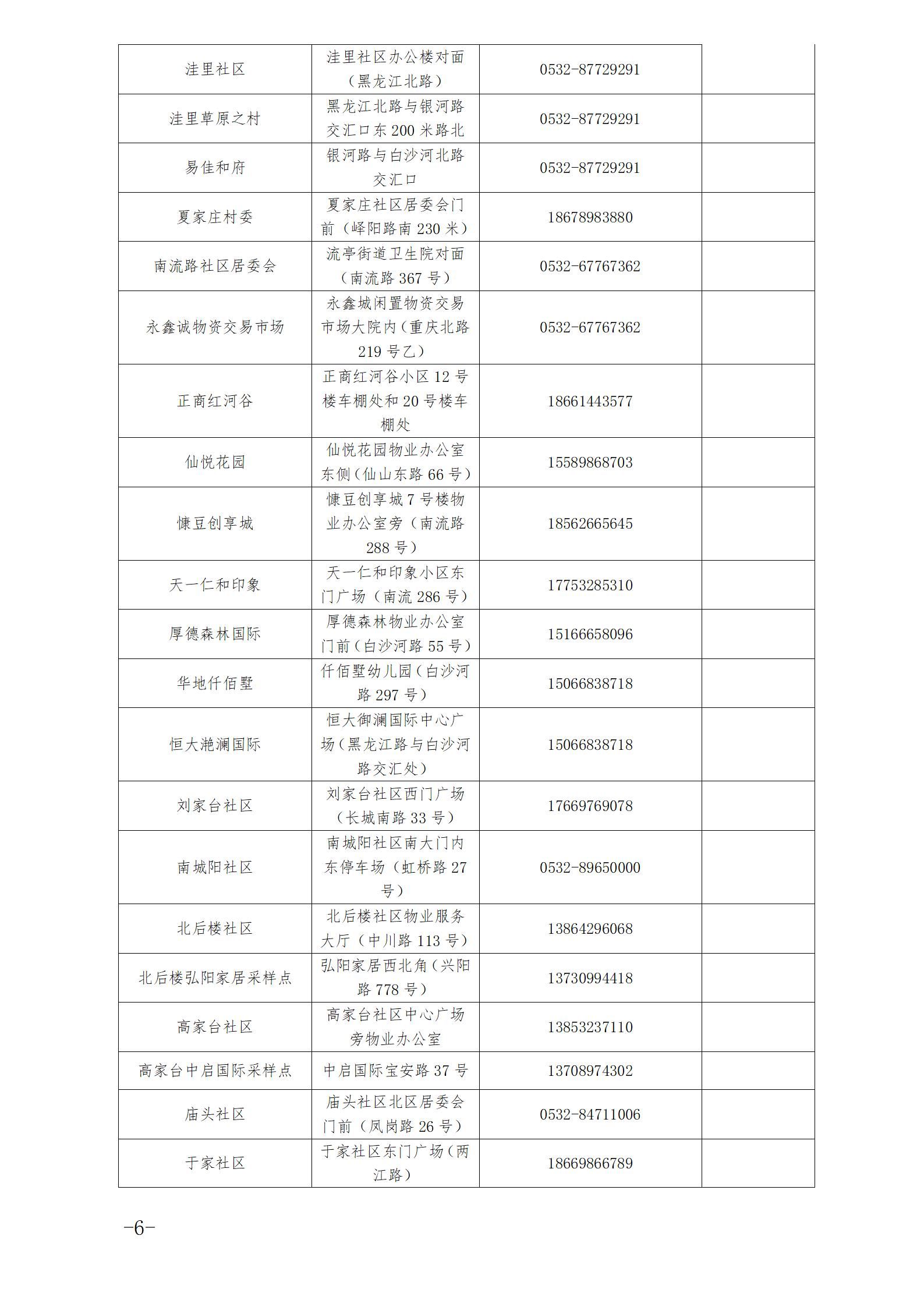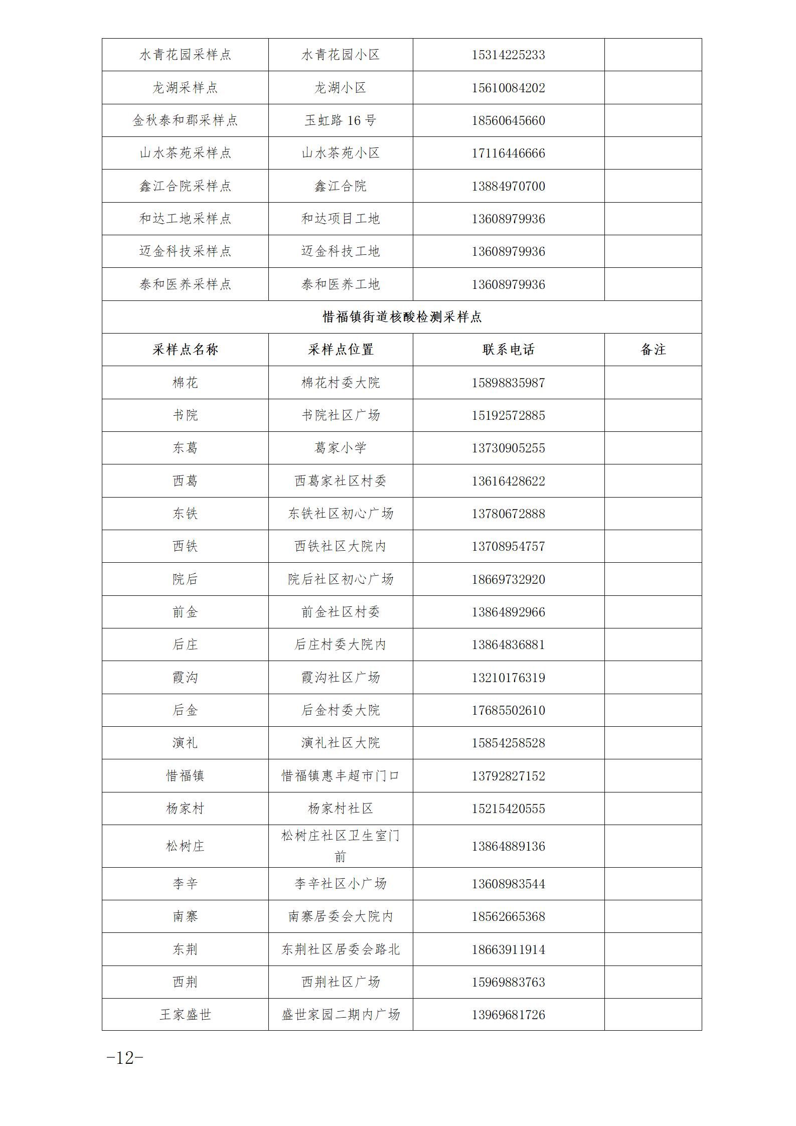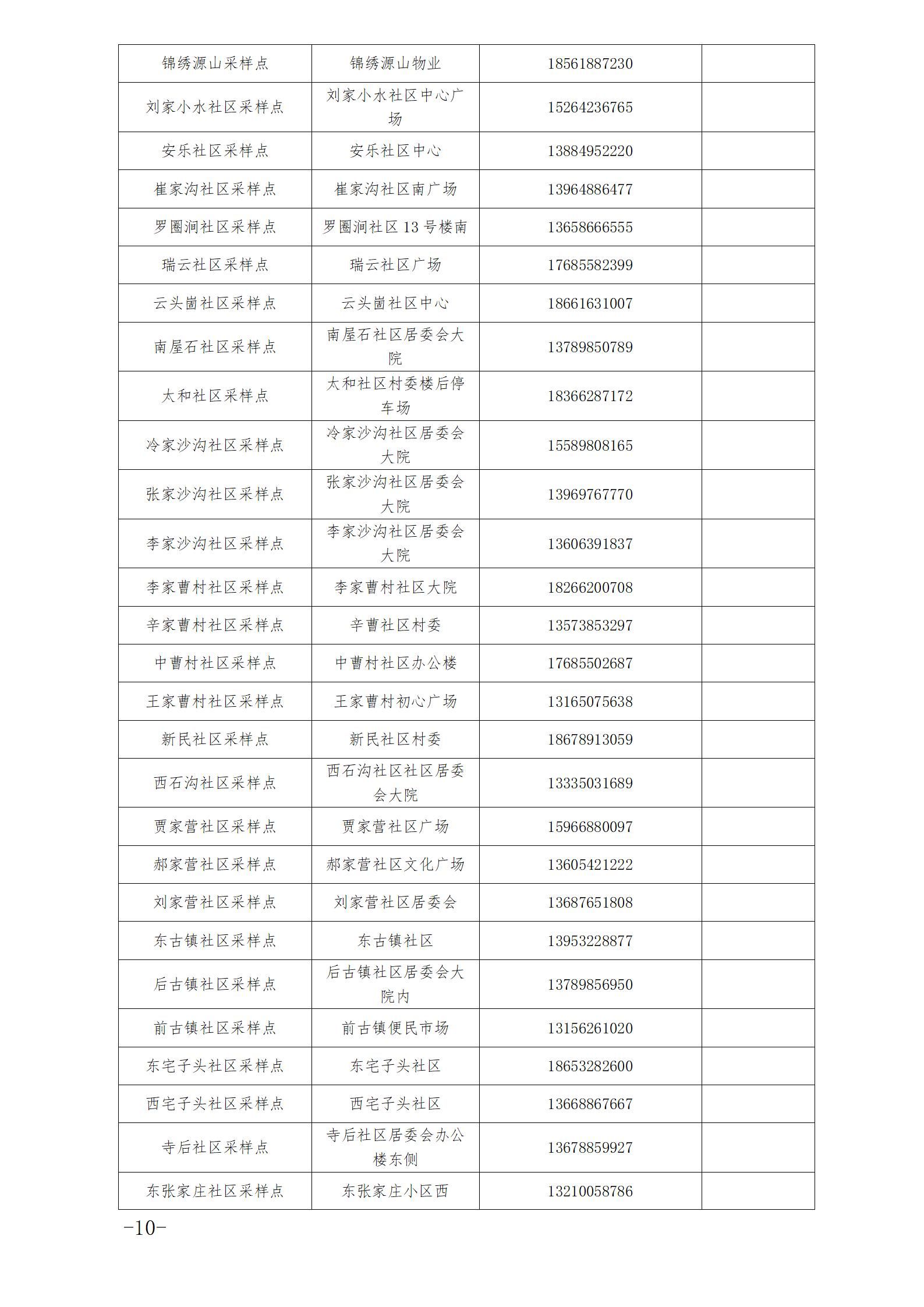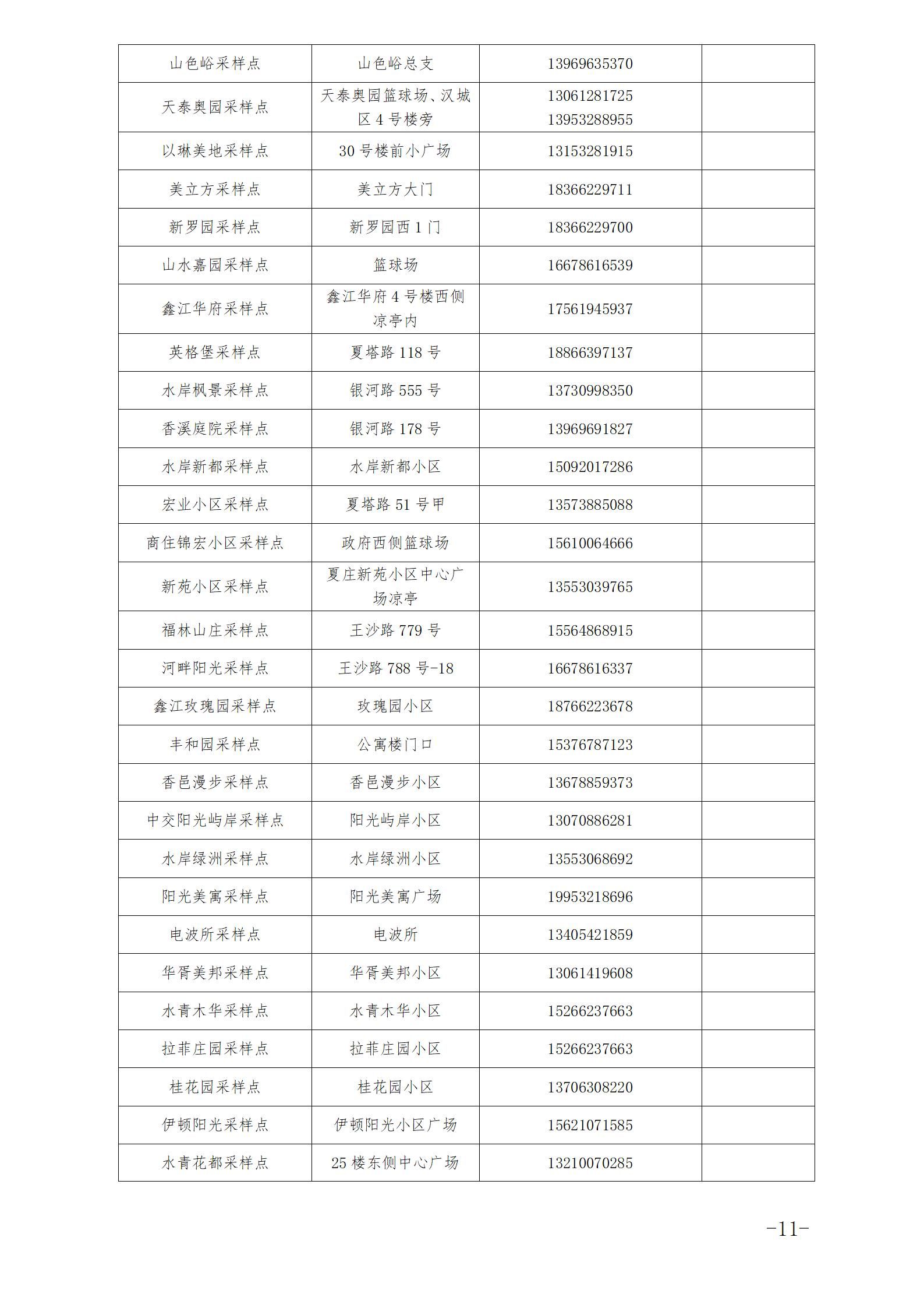 各街道、高新区防指办、高新便民服务中心就近设置采样点(采样点信息附后),请关注区及各街道、高新区防指办、高新便民服务中心发布的信息。