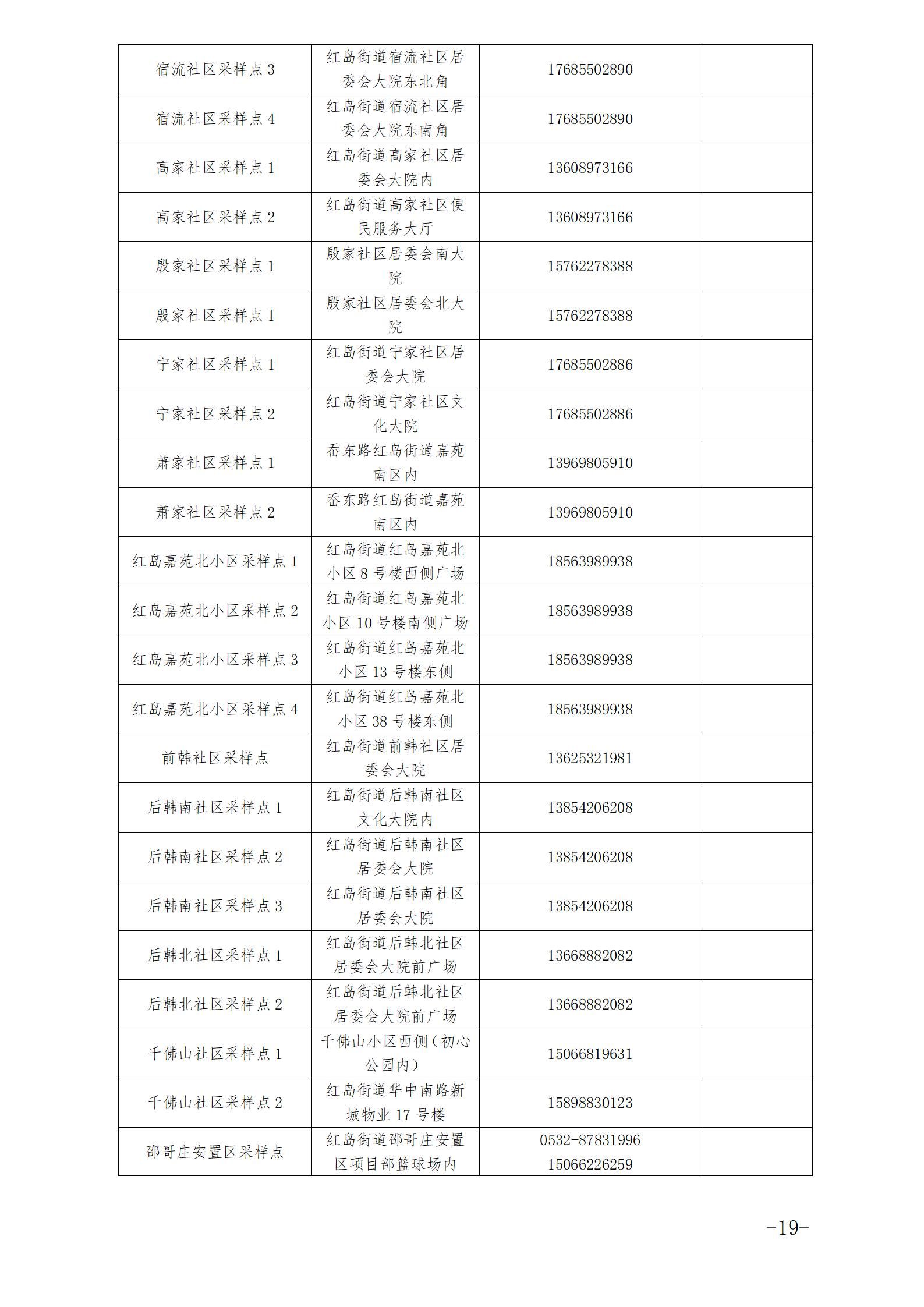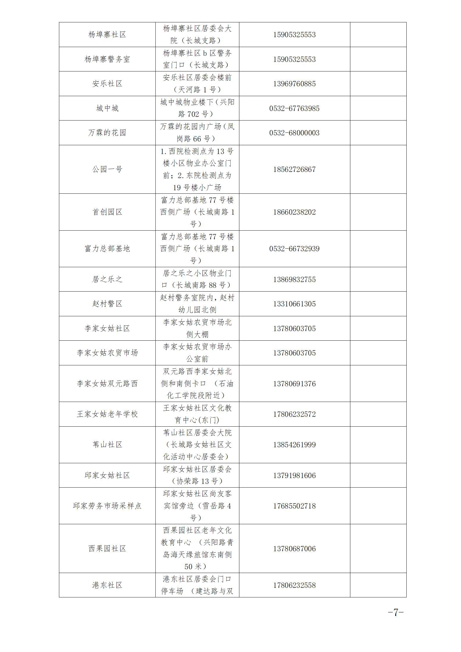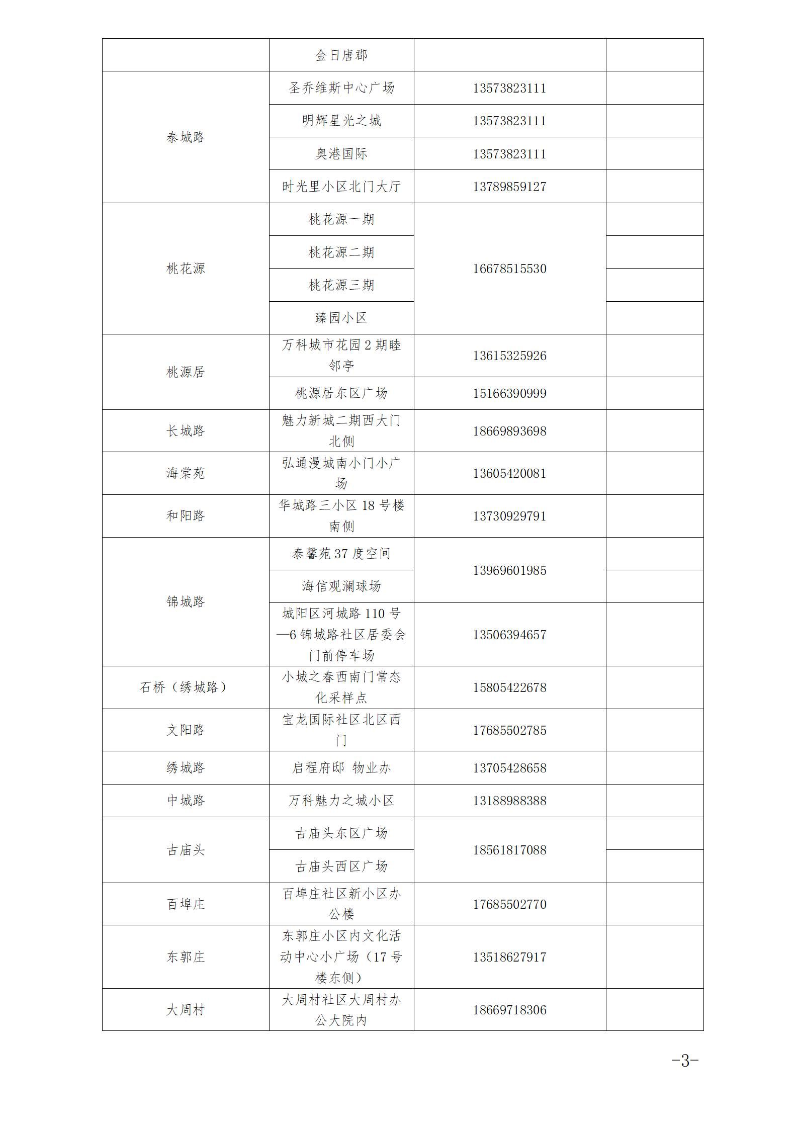 各街道、高新区防指办、高新便民服务中心就近设置采样点(采样点信息附后),请关注区及各街道、高新区防指办、高新便民服务中心发布的信息。