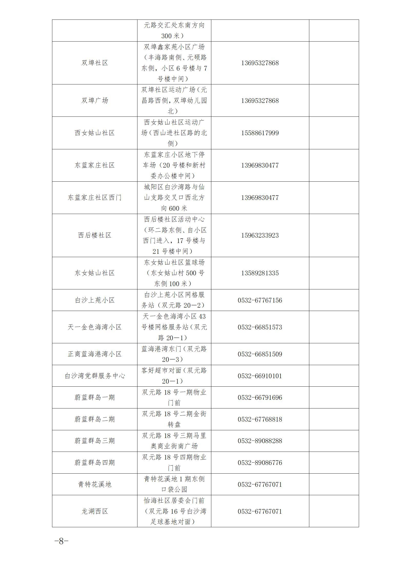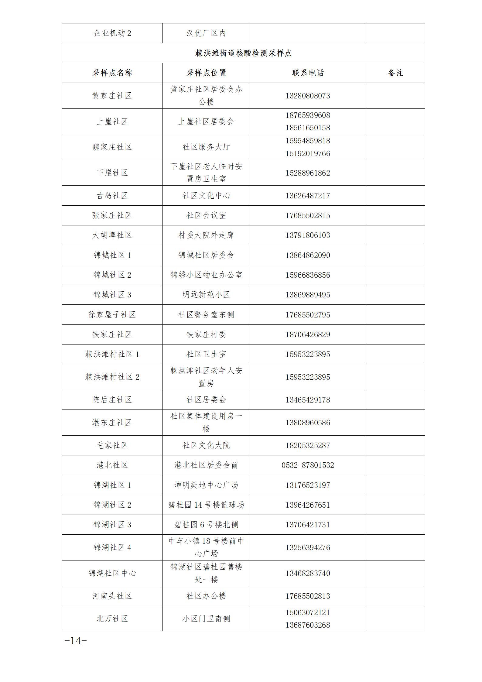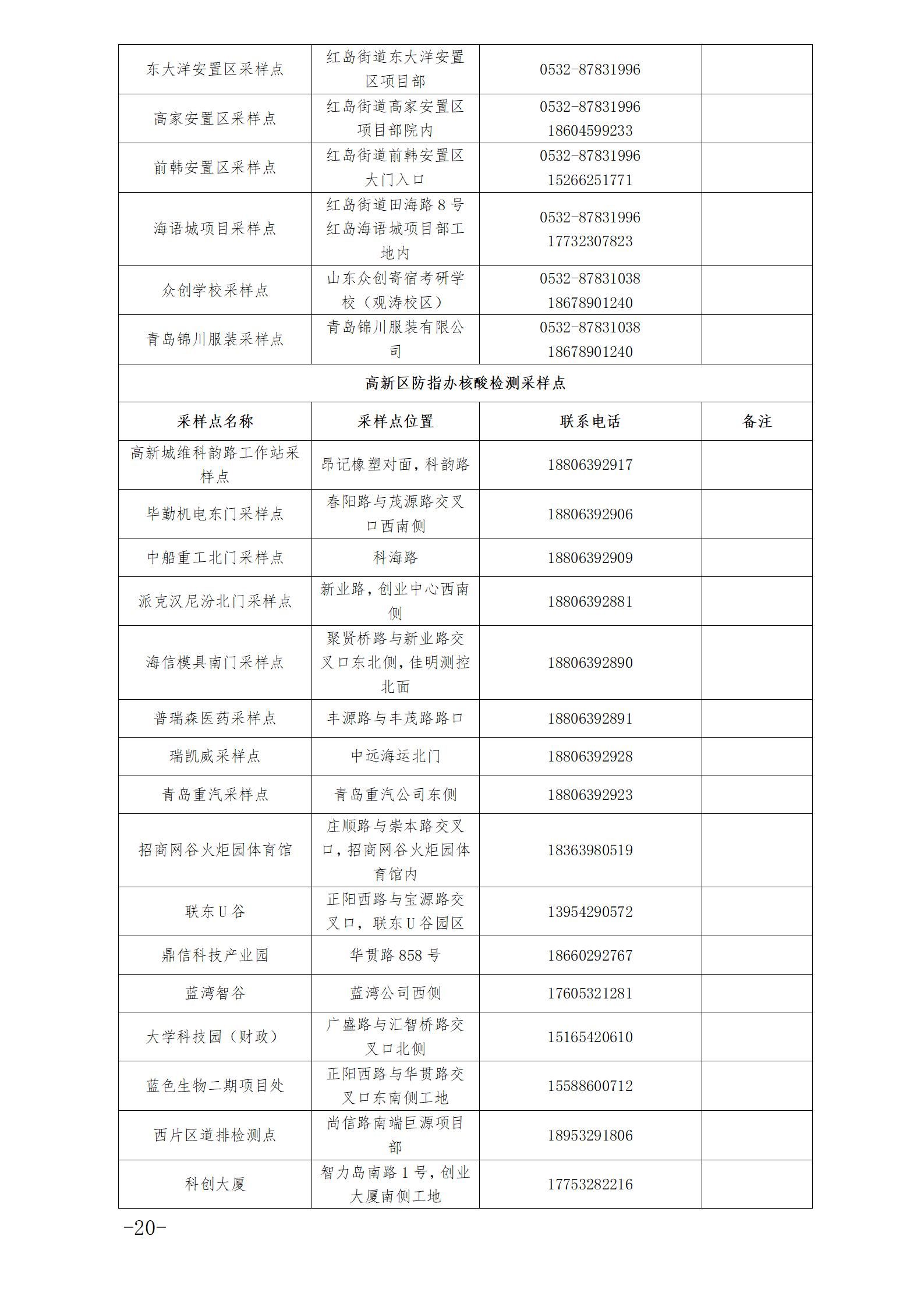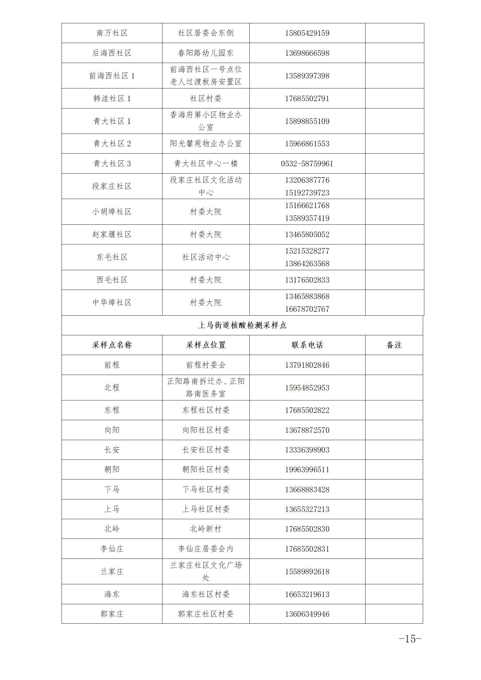 各街道、高新区防指办、高新便民服务中心就近设置采样点(采样点信息附后),请关注区及各街道、高新区防指办、高新便民服务中心发布的信息。